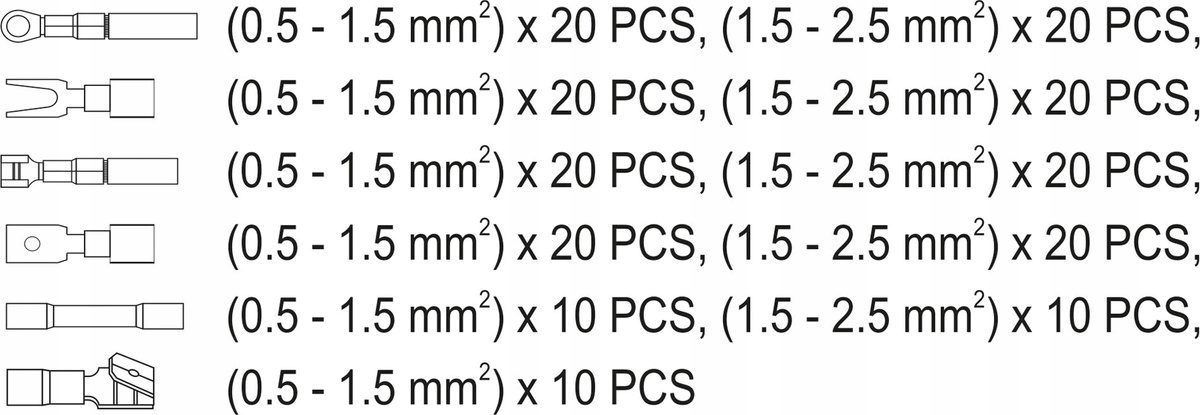 - червоні та сині ізольовані з’єднувачі, вилочний тип: по 20 шт.
