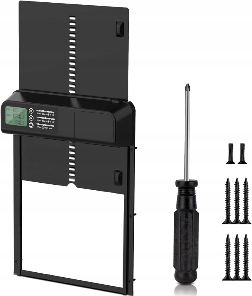 - 【Доставки продуктивності акумулятора). Швидка заміна акумулятора менше ніж за хвилину за допомогою прикріпленої викрутки. 3 батареї AA витримують щонайменше 3 місяці з повсякденним використанням автоматичних курячих дверей.
