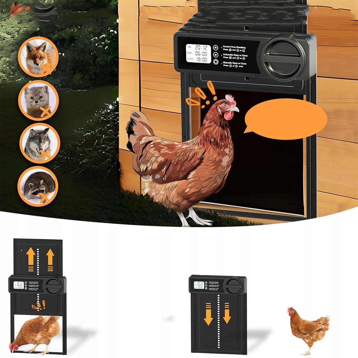 Наші автоматичні двері до курячого будинку виготовлені з міцного алюмінію і були розроблені для витримки екстремальних погодних умов. Забезпечте своїм курей безпеку навіть у складних погодних умовах завдяки нашим високоякісним дверима курячого кура.