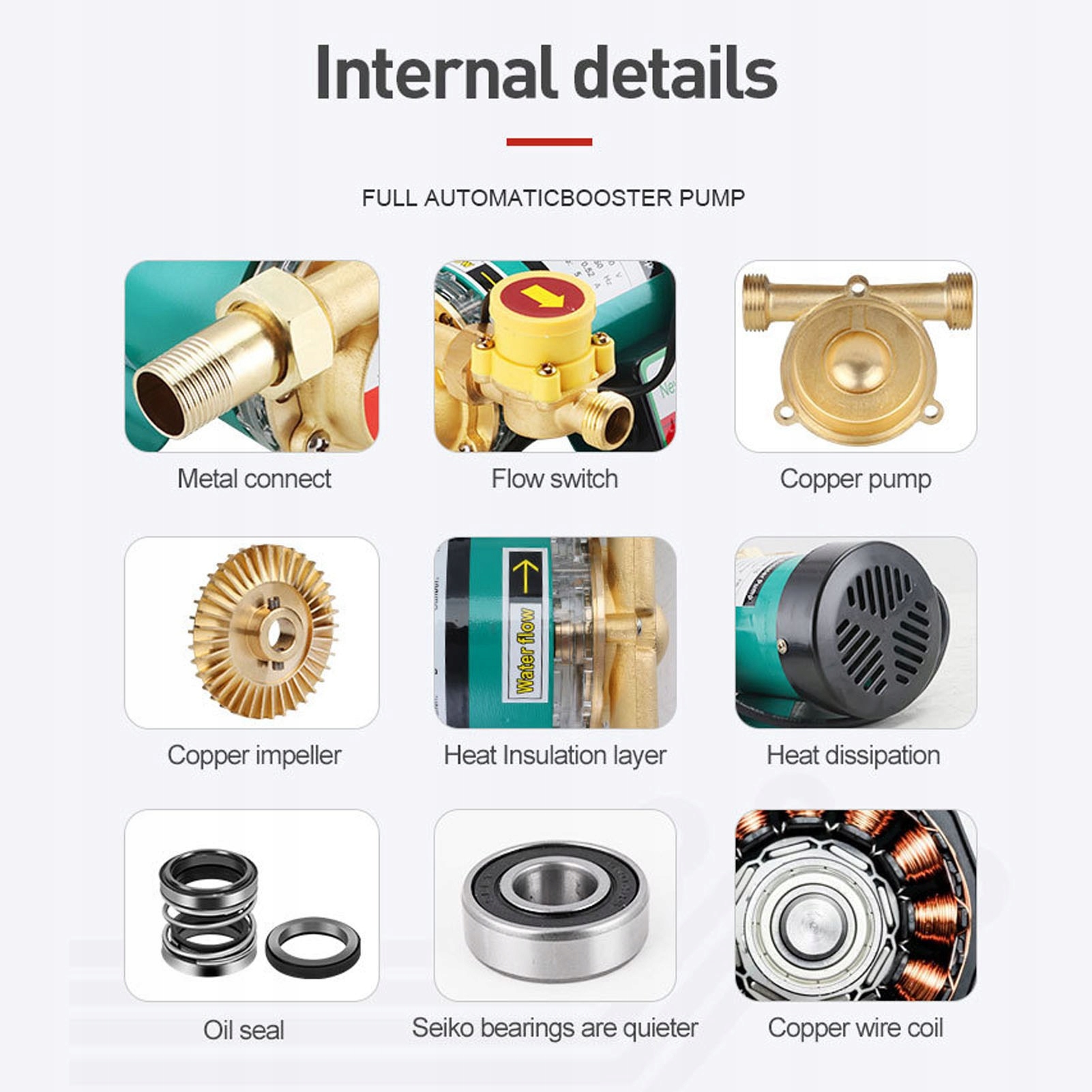 1, потужний двигун: оснащений потужним двигуном 120 Вт, наш насос для домашньої води ідеально підходить для підвищення тиску води в трубопроводах низького тиску. Ідеально підходить для дворівневих квартир, приміських вілл, водонагрівачів та водонагрівачів. 2. Автоматичний перемикач потоку води: натискання насоса з автоматичним перемикачем потоку води може автоматично регулюватись залежно від ваших потреб, збільшуючи тиск у резервуарі для домашньої води та підтримуючи постійний тиск. Це енергія, що пошкоджує, щільно і працює при низькому шумі. 3, довговічні матеріали: Наш допоміжний насос оснащений духовим корпусом насоса, латунним ротором та валом з нержавіючої сталі, що забезпечує стабільність, міцність та стійкість до корозії під час тривалого використання. 4, Ефективна конструкція охолодження: високоефективна вентилятор охолодження в нашому насосі забезпечує більш тривалу роботу двигуна та підвищення ефективності. Ефективно супроводжує тепло, покращуючи загальну продуктивність. 5, проста установка: насос оснащений суцільною основою та зручними кріпильними отворами, що дозволяє легко монтувати на підлогу або стіну. Забезпечує безпечну та стабільну установку водяного насоса.