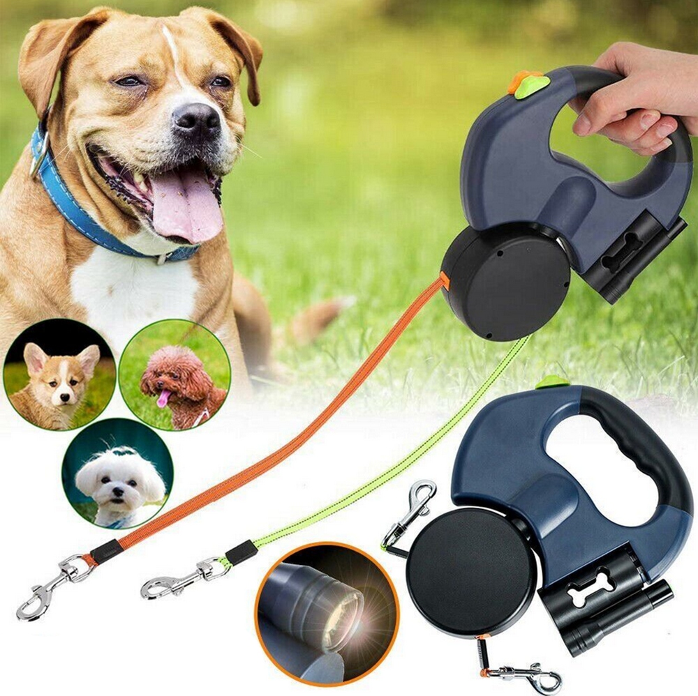 Автоматичний подвійний повідок для двох собак з 3 -метровим світловідбиваючим ліхтариком