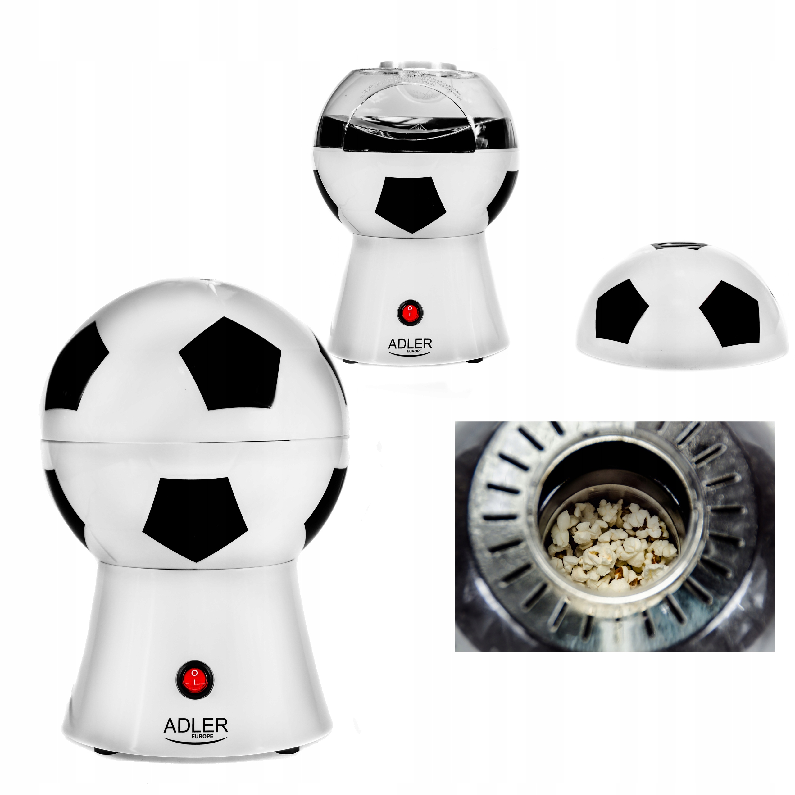 Апарат для приготування попкорну ADLER AD 4479 - найкращий подарунок кожному любителю спорту! Оригінальний дизайн і неповторний зовнішній вигляд м'ячеподібної машини порадує всіх, хто стежить за футбольними іграми наших і іноземних спортсменів! Висока якість виконання гарантує тривале використання обладнання. Виріб оснащений мірним стаканом для відмірювання порцій кукурудзи, прозорою кришкою, що полегшує контроль процесу смаження, вимикачем з контрольною лампочкою та захистом від перегріву. Крім того, кришка служить вазочкою для попкорну, яка здивує гостей і домочадців під час наступних спільних веселощів. Нам не потрібен додатковий посуд! Це означає менше миття!