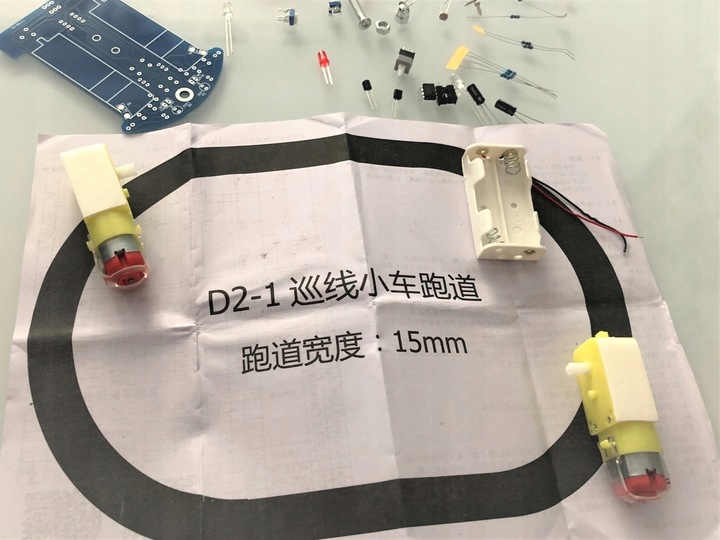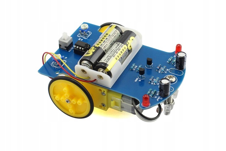 Після правильного складання робот рухається за чорною лінією на землі. Система працює завдяки світлодіодам і фоторезистору.