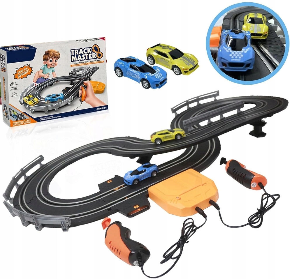 Довжина траси становить 214 см, що дає достатньо місця для шаленої їзди. У набір входять 2 транспортні засоби для ще більшого розваги. Завдяки 2 контролерам діти зможуть керувати своїми автомобілями, змагатися між собою та вдосконалювати навички водіння.