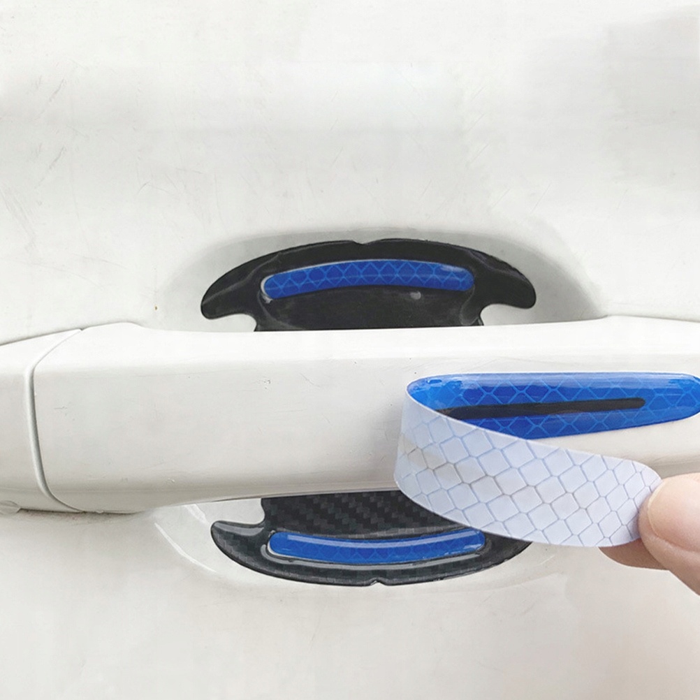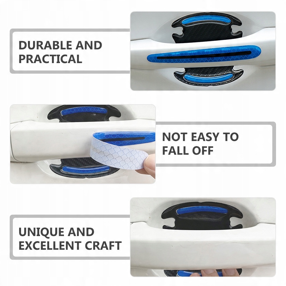 Набір світловідбиваючих смужок автомобільної дверної ручки та дверної ручки виготовлено з клею ПВХ, містить світловідбиваючі матеріали, добре помітні вночі. Вони відрізняються високою адгезією, високою зносостійкістю, довговічністю при тривалому використанні.