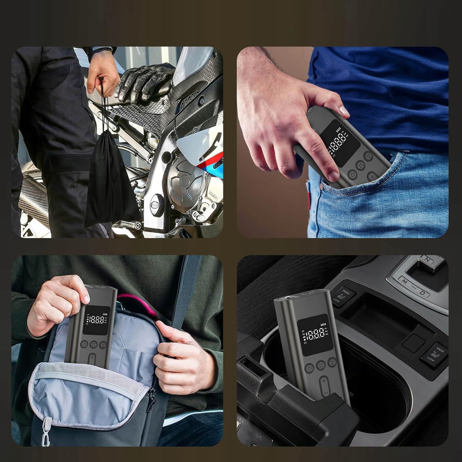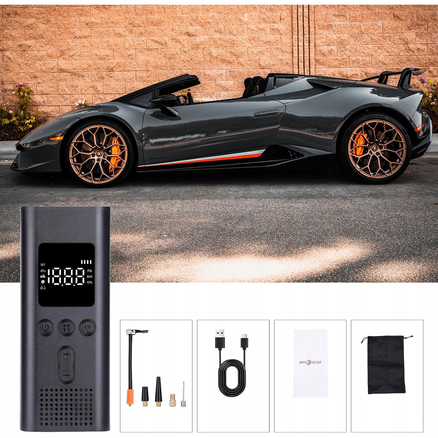 ☑ ☑ Електричний повітряний насос оснащений великим цифровим РК -дисплеєм . Підтримує 3 одиниці вимірювання тиску: PSI, KPA та BAR. Ви можете вільно вибрати режим накачування та індивідуально регулювати значення тиску повітря, а також відображати дані на тиску в шинах у реальному часі.