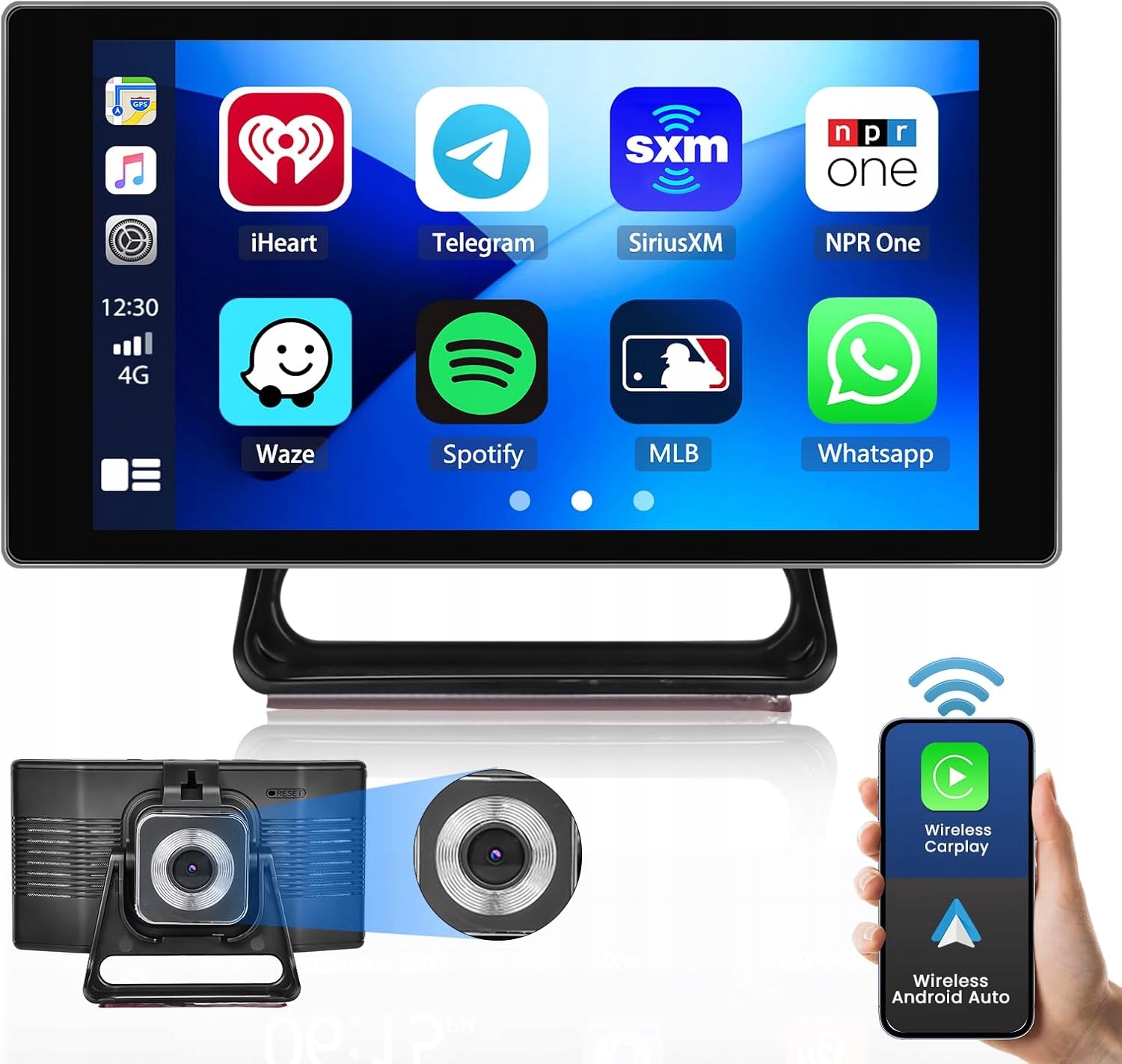 - [Wireless Carplay & Android Auto & Voice Control] Просто підключіть екран CarPlay до свого смартфона через Bluetooth, а потім отримайте доступ до мобільних програм, таких як Google Maps, Spotify і WhatsApp без необхідності використання кабелю передачі даних. Окрім використання голосових команд Siri для керування вашим iPhone, Google Assistant керує вашим телефоном Android