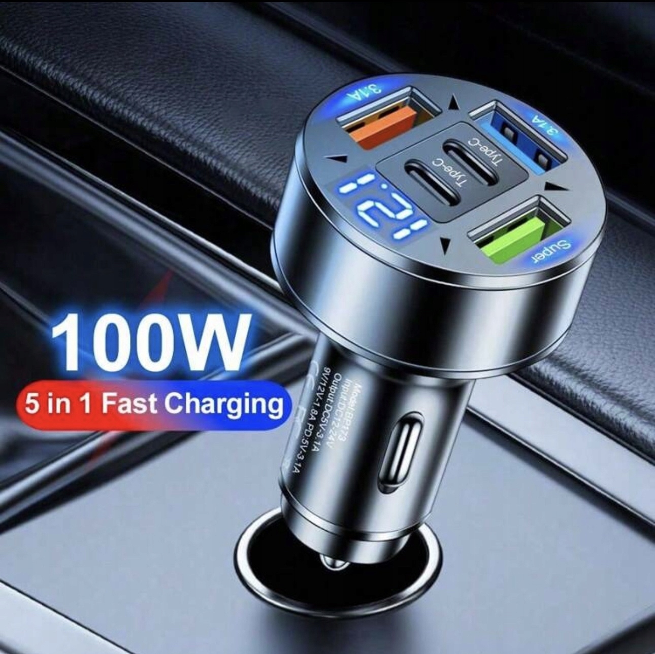 Автомобільний зарядний пристрій 100 Вт, 3 USB, 2 Type-C, 5 портів