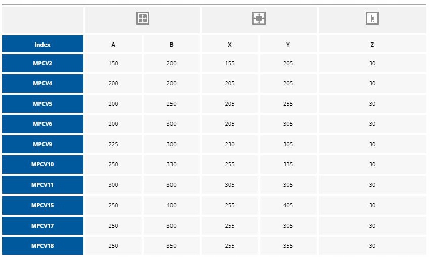 - MPCV виробляється в багатьох розмірах, сумісних із розмірами плитки.