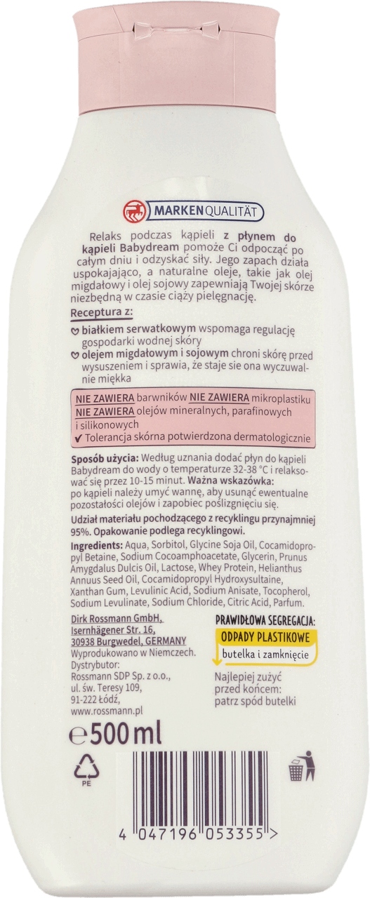 МАМА РІЧНА РІЧИНА для ванни для свердловини. Відпочиньте під час купання з BabyDream, допоможе вам відпочити після цілого дня та відновити сили. Його запах має заспокійливий ефект, а натуральні олії, така мигдальна олія та соєва олія забезпечують необхідну шкіру під час вагітності. Не містять барвників