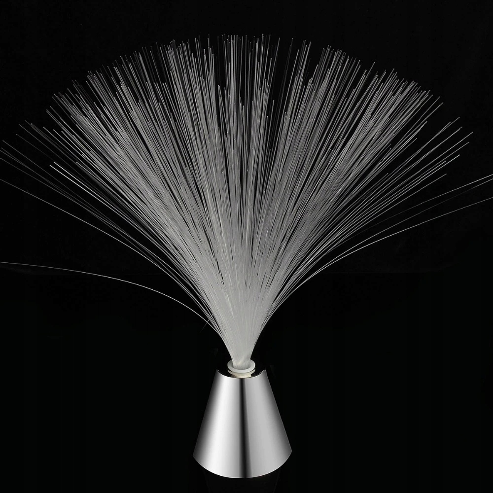 Сучасна декоративна лампа на стіл висотою 30 см. Лампа має хромовану основу, з якої виступає прозорі тонкі вуса, які після ввімкнення різних кольорів. чудово виглядає як на дитячому столі, так і в офісі в сучасному інтер’єрі. Дає заспокійливу і заспокійливу атмосферу у кожній кімнаті.