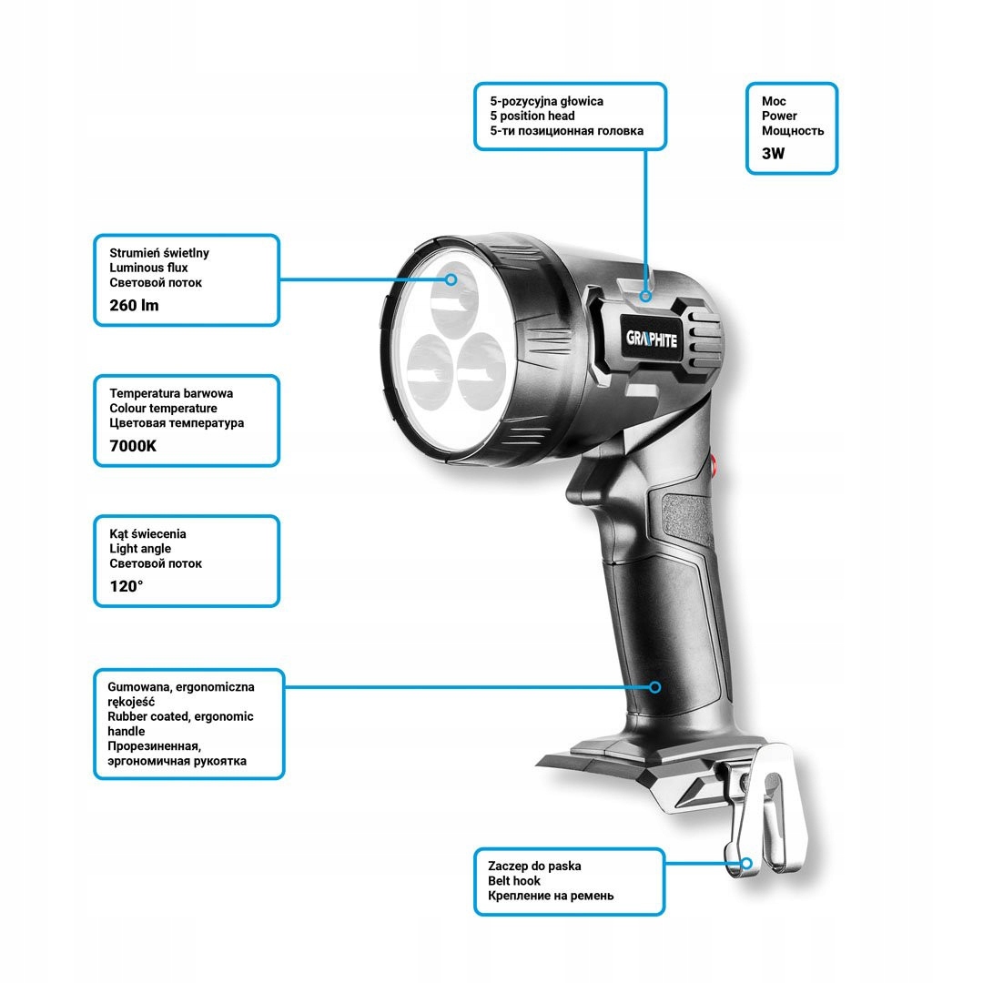 - Графітовий ліхтарик, співпрацюючи з 18В графітовою енергією+.