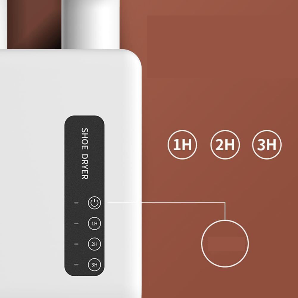 У випадку взуття з різних матеріалів, різної товщини або різних рівнів вологості, наша сушарка пропонує еластичний таймер. Ви можете встановити таймер 1/2/3 год, щоб вимкнути. Ви можете встановити час висихання для різних взуття, не турбуючись про непотрібне споживання енергії. Точний контроль часу може захистити ваше улюблене взуття від перегріву.