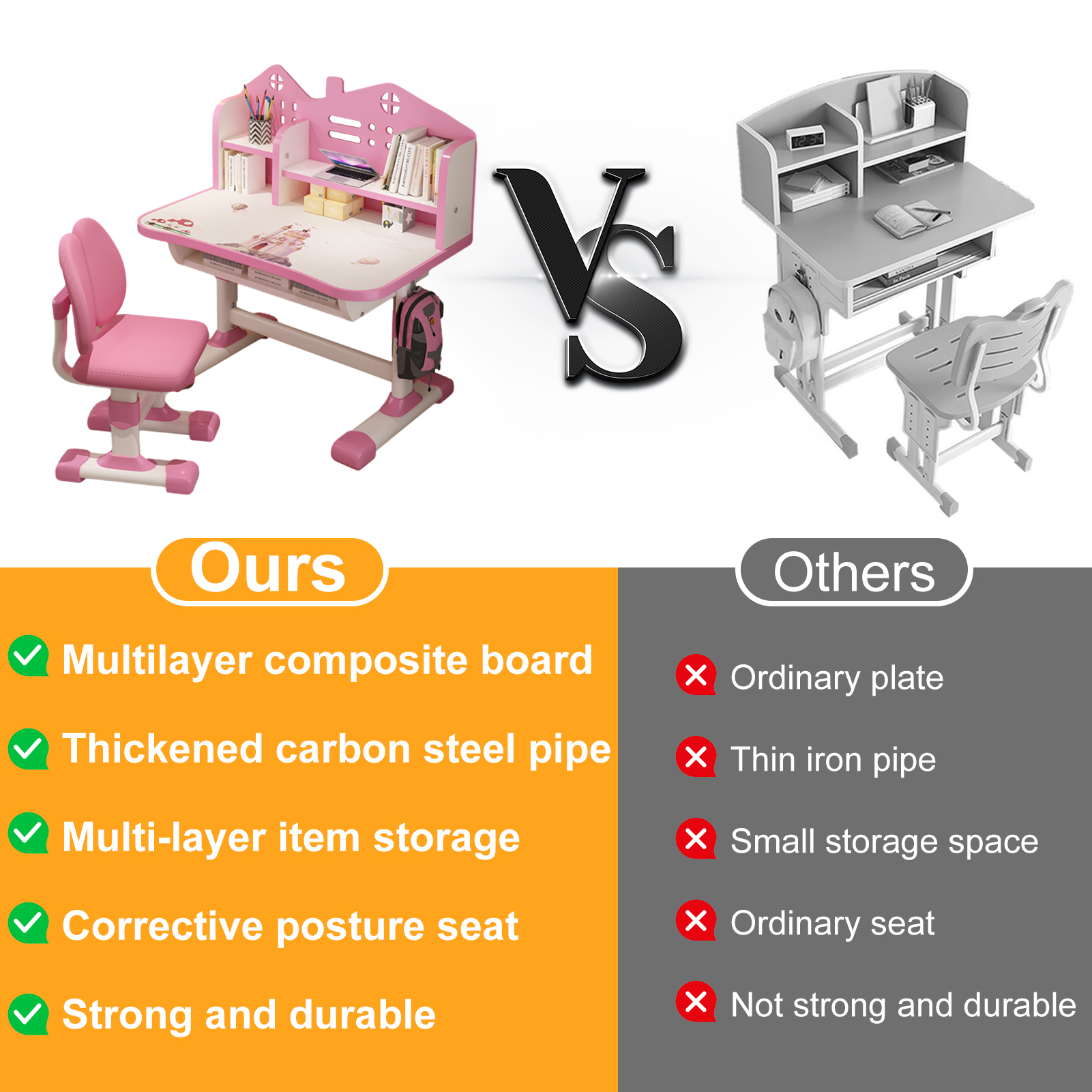 Будівництво золотої відстані може підтримувати вертикальне сидяче положення дитини, захищати очі дітей. Просторий ящик під столом для зберігання шкільних приладдя.