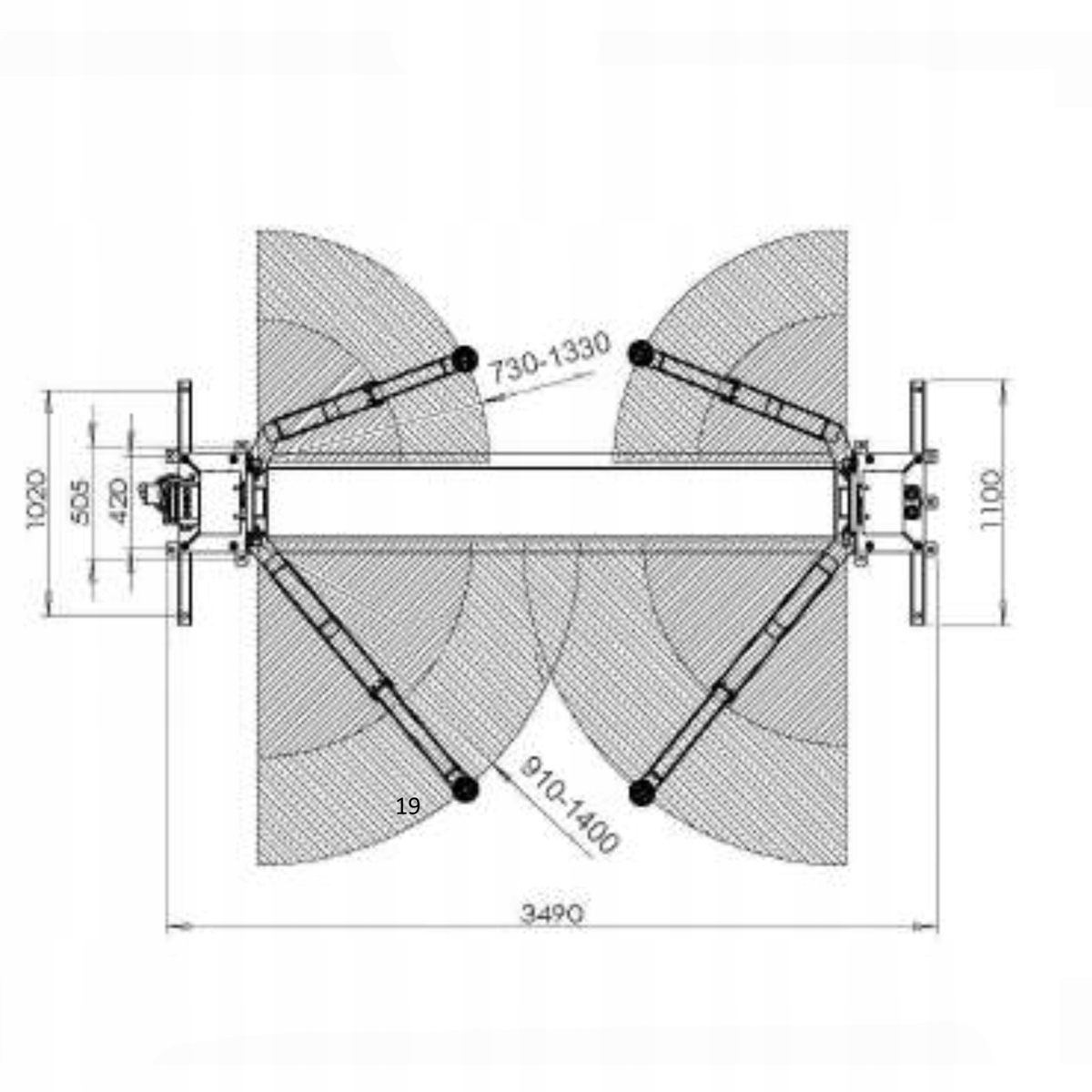 - Циландри, які переміщують затискачі, дозволяють точно відцентрувати та закріпити тримач колеса. Розташування педалей забезпечує комфорт для обслуговуючого персоналу.