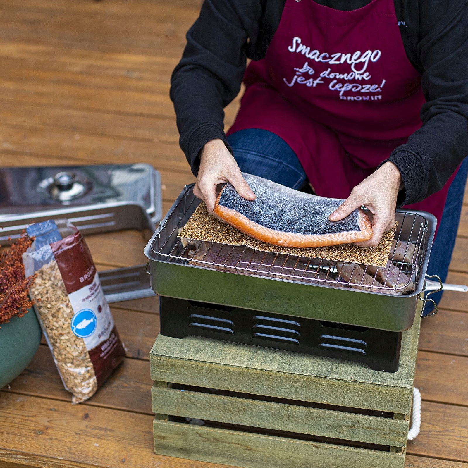 Високоякісна портативна дим з регульованою ємністю буде ідеальною на вашій кухні і стане фантастичною ідеєю подарунка! Виготовлений з високоякісної нержавіючої сталі, дозволяє отримувати м'ясо, рибу, сир, яйця та ковбаси. Його невеликий розмір означає, що ви можете використовувати його як на балконі, терасі, в саду, і під час подорожі, наприклад, на кемпінгу чи кемпінгу. Використання однієї решітки Smokehouse дозволить вам отримати до 4 форелі - додаткова підлога з іншою решіткою змусить вас готувати їжу в Смокі з нагоди Різдва чи зустрічей у більшій групі! >