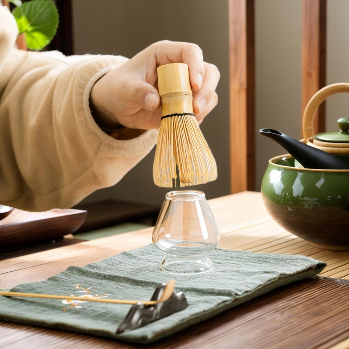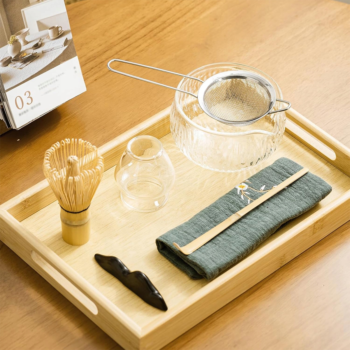 🍵- Цей набір містить повні інструменти , такі як віночок, чайна ложка, підставка для збити, чайна миска, сито, чашка, тканина, що забезпечує все необхідне для традиційної чайної церемонії. Матч у будь -який час і місце.