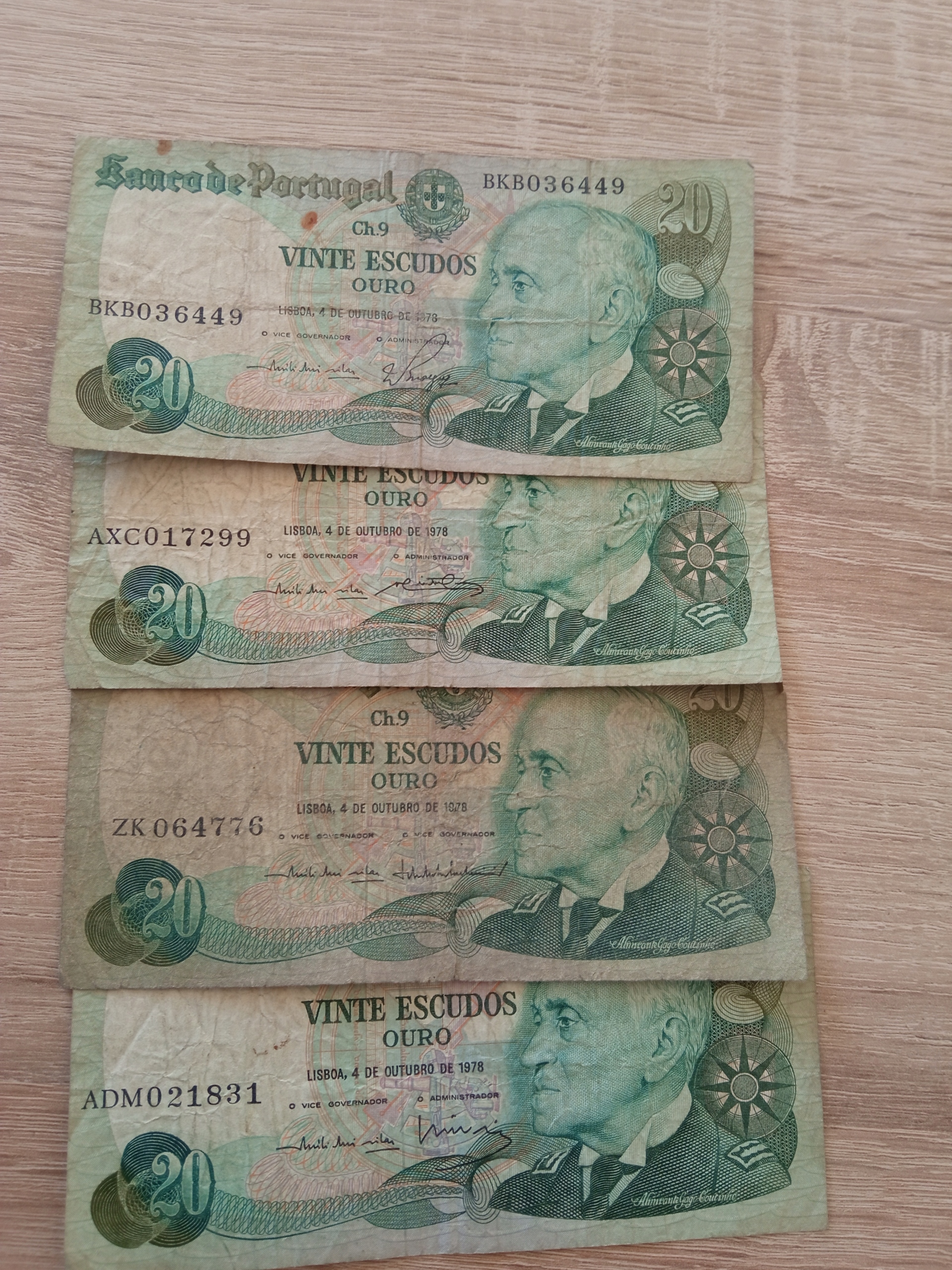 Banknot 20 Escudos 1978 r Portugalia 4 rózne podpisy na banknotach