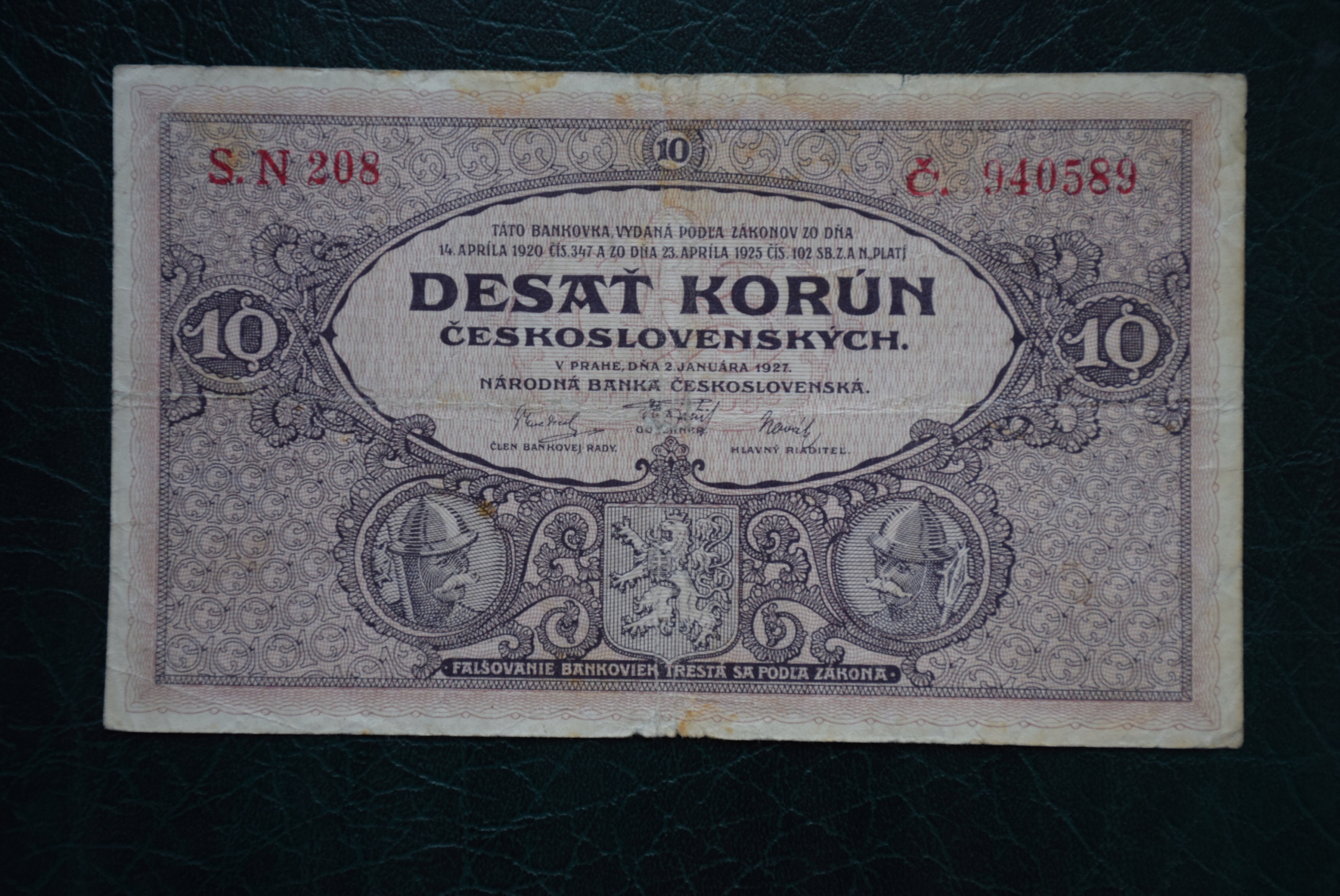 Banknot Czechosłowacja 10 Koron 1927 seria S.N 208 !!!