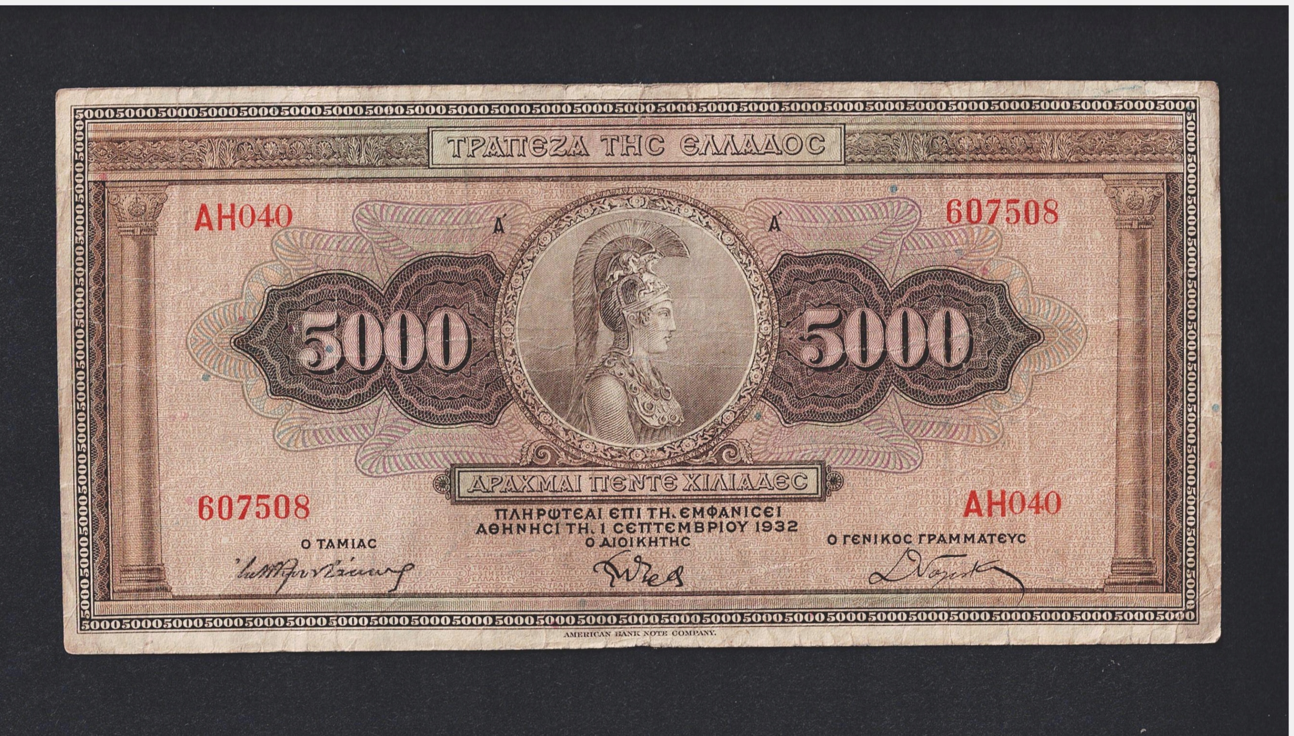 БАНКНОТА ГРЕЦІЯ -- 5000 ДРАХМ -- 1932 рік