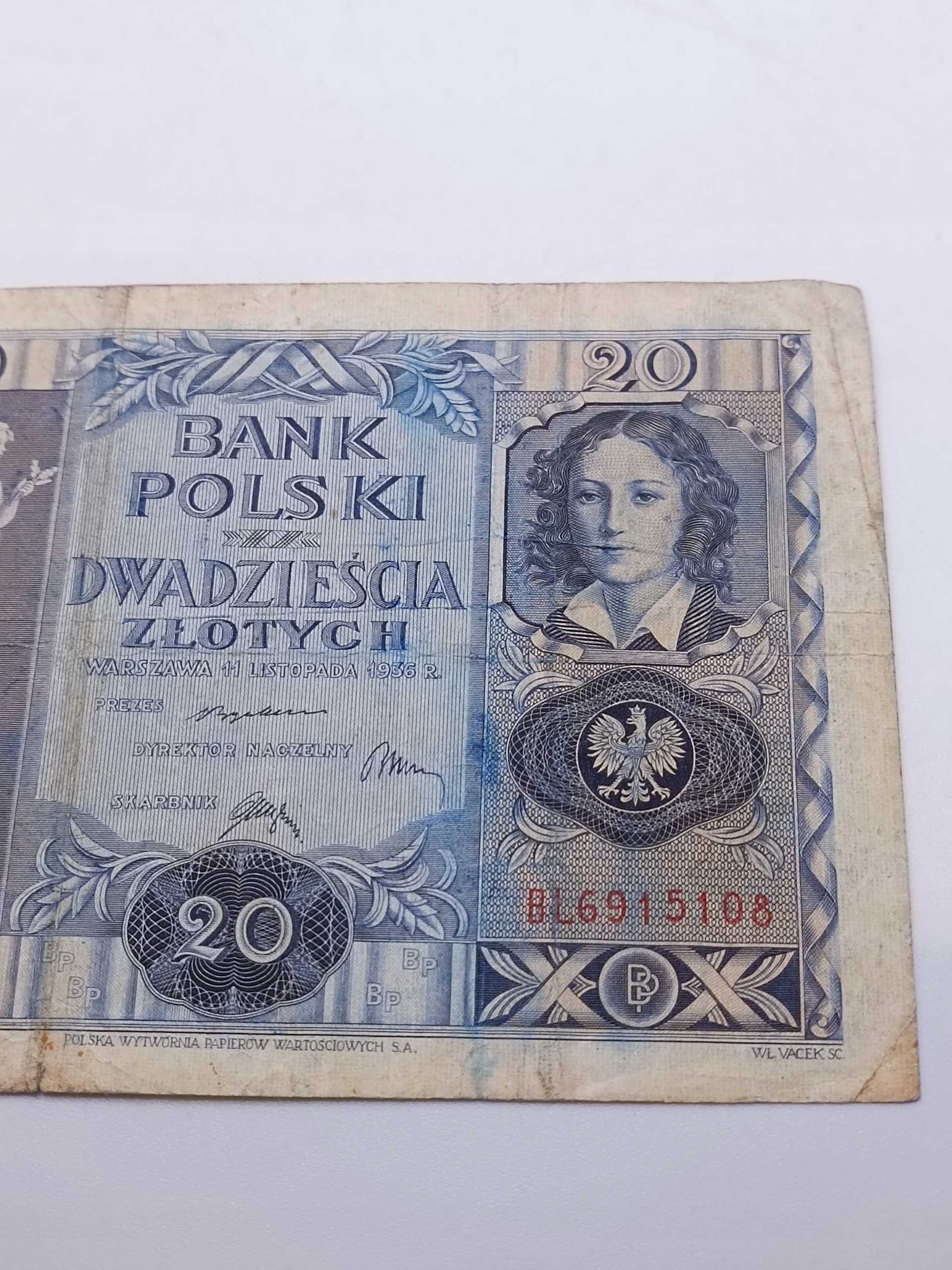 Банкнота PLN 20 Двадцять Zlotys Warsaw 11 листопада 1936 р. BL6915108