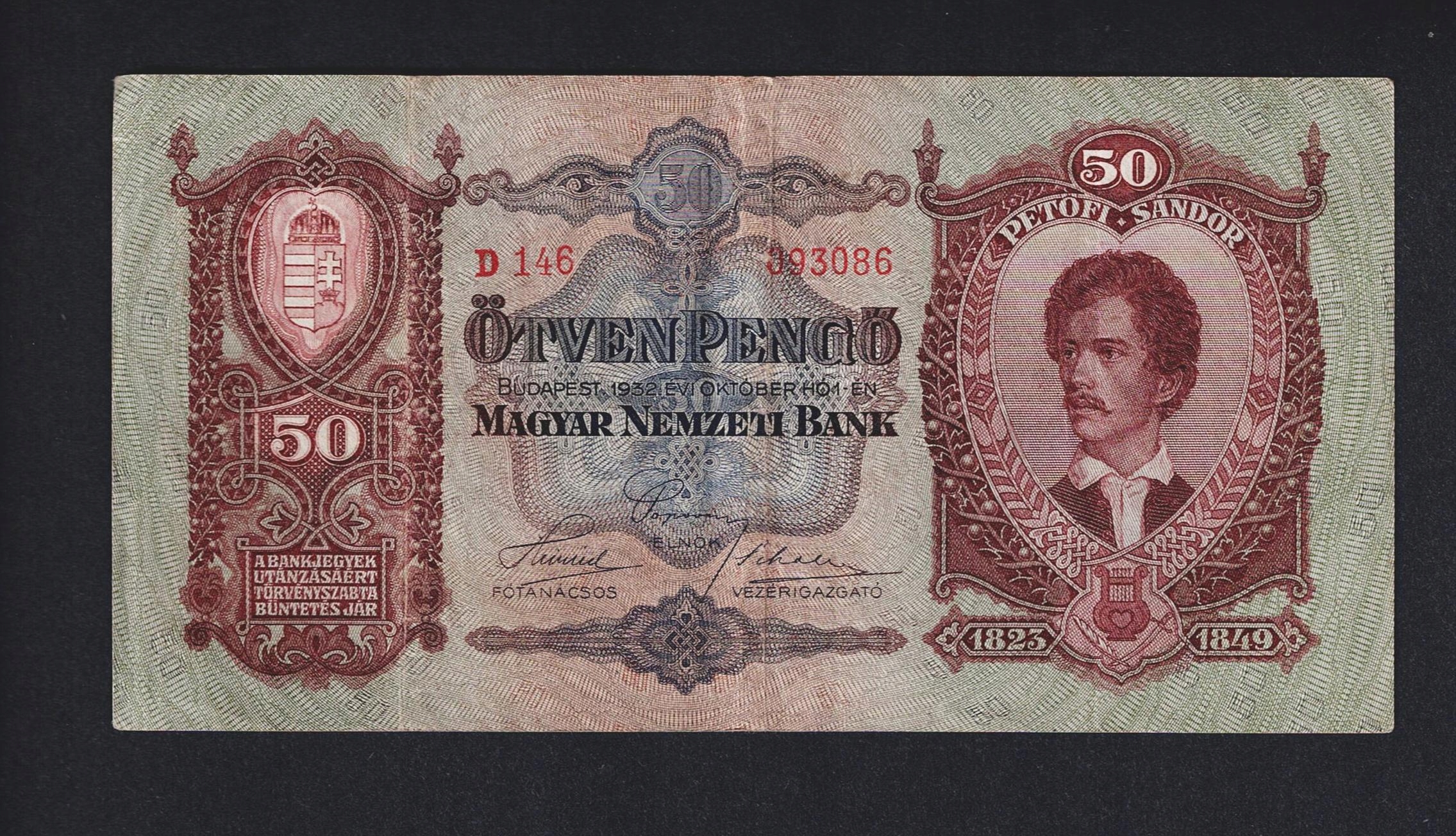 БАНКНОТА УГОРЩИНА -- 50 пенго -- 1932 рік