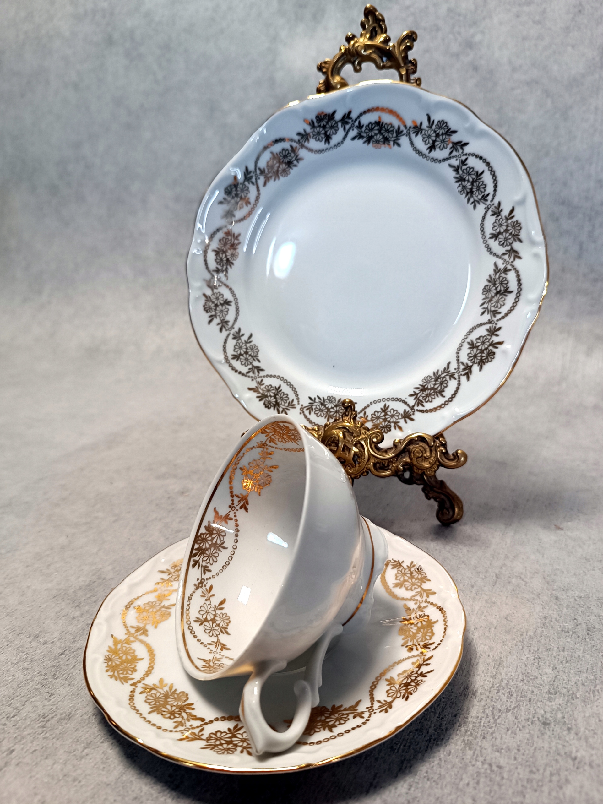 Bareuther Waldsassen Trio Cup Saucer Dessert Plate Гірлянди