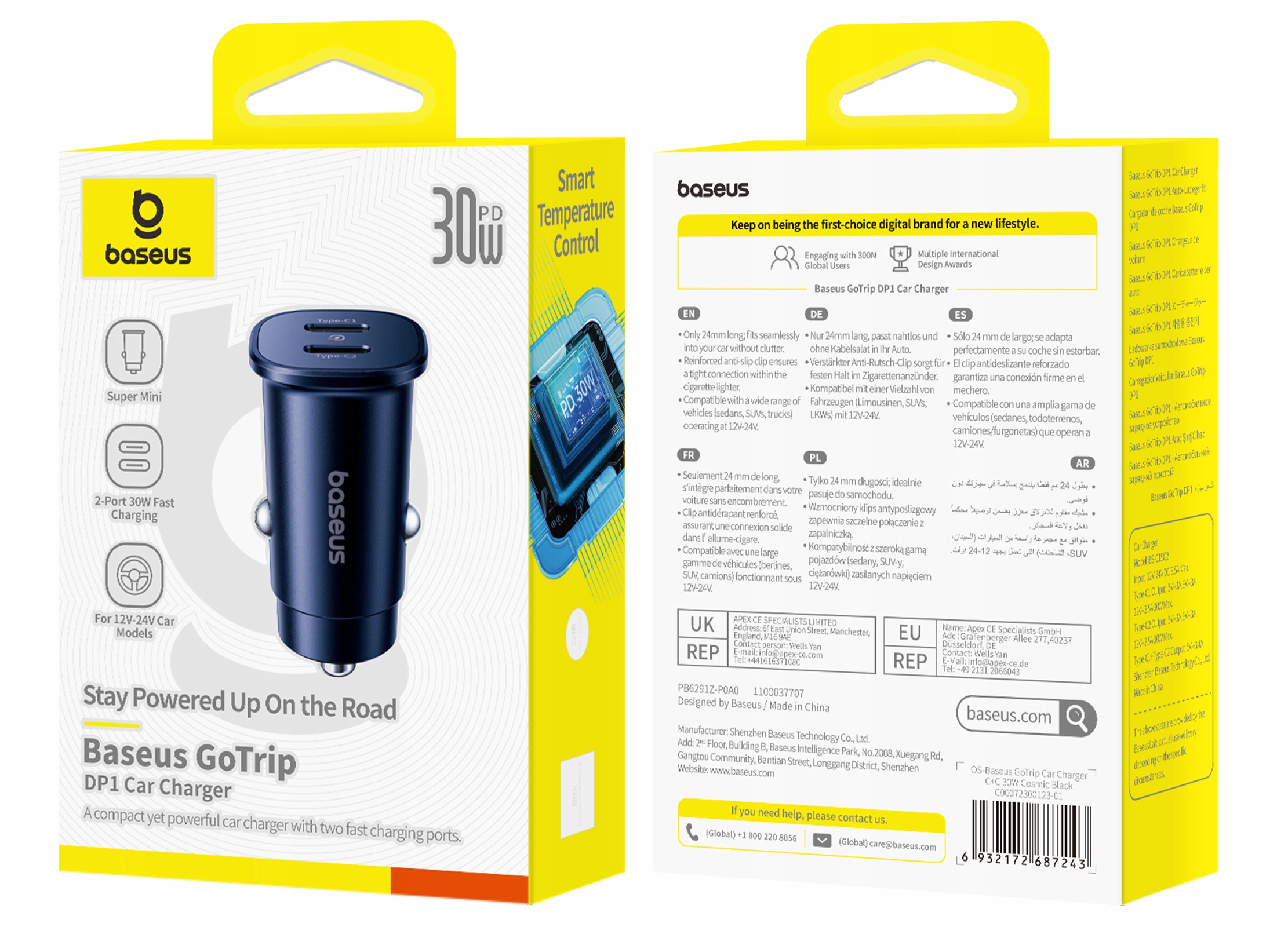 ⚡ Baseus gotrip Car Charger C+C 30W-A компактний зарядний пристрій, який буде тримати ваш темп! 30 Вт , підтримуючи багато протоколів швидкої зарядки (PD, QC, FCP, AFC).