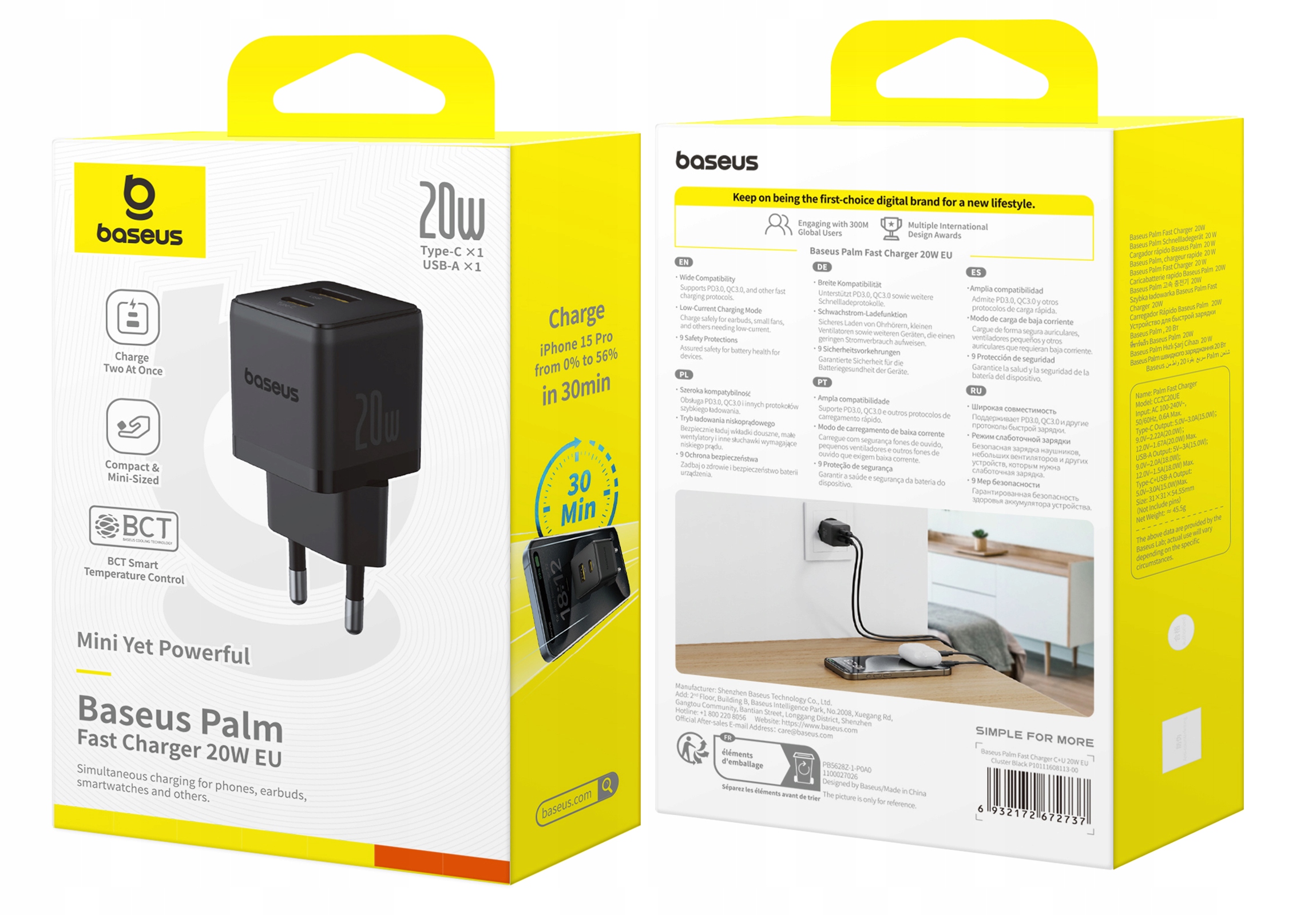 Універсальний зарядний пристрій Baseus з 20w є ідеальним рішенням для людей, які цінують швидку зарядку у компактній формі. Завдяки роботі протоколів PD3.0 та QC3.0, він швидко заряджає ваш смартфон до 56% акумулятора всього за 30 хвилин!