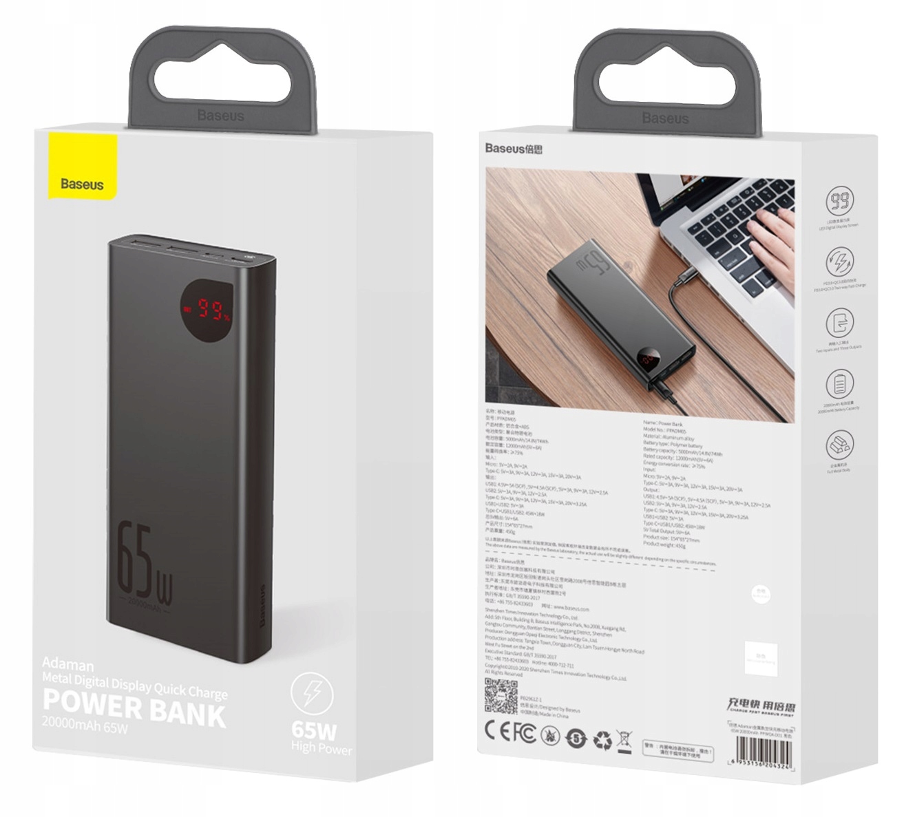 BASEUS POWER BANK 20000 MAH QC 4.0 USB-C PD 65 Вт