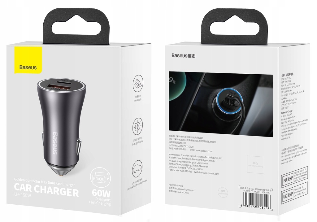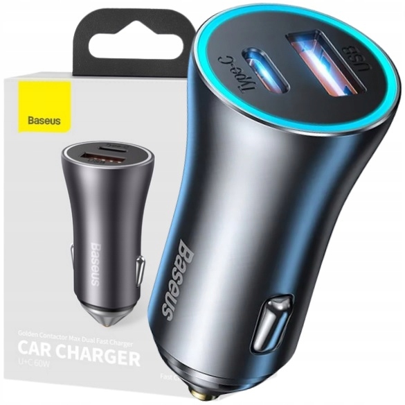 - Модель: Baseus Golden Contactor Max Dual Fast Charger Car Charger U+C 60W Dark Grey