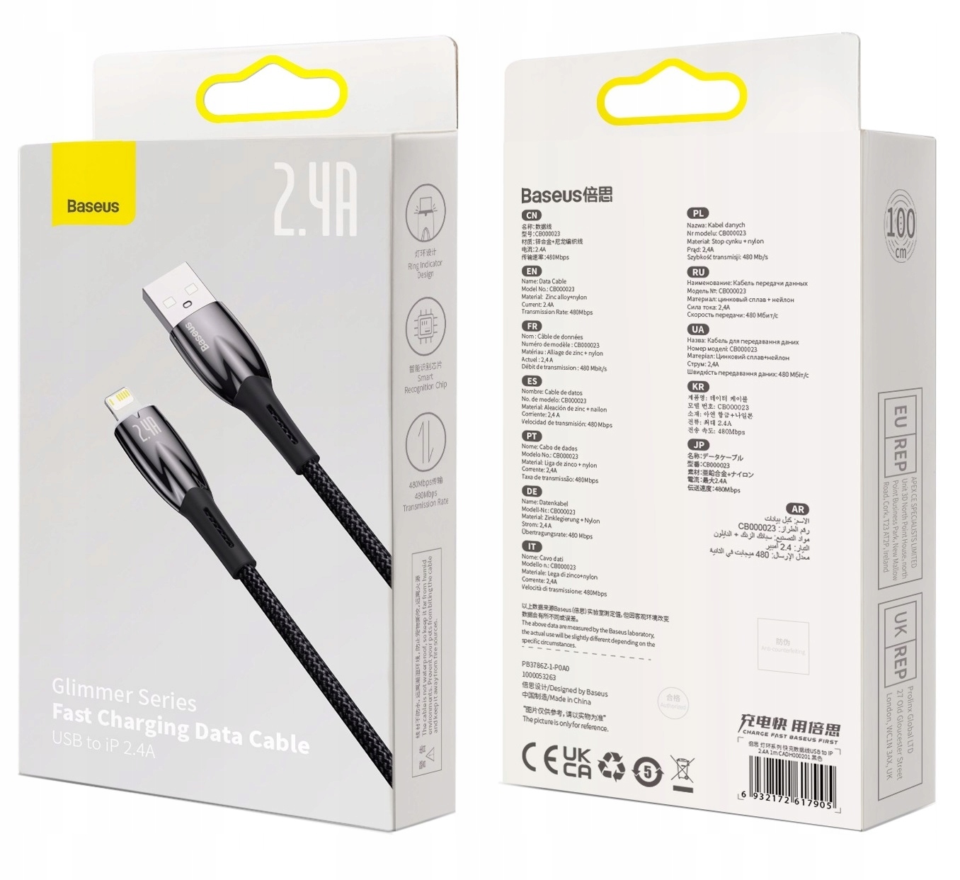 - Модель: кабель для швидкого заряджання Baseus Glimmer Series Fast Charging Data Cable USB to iP 2.4A 1m Black