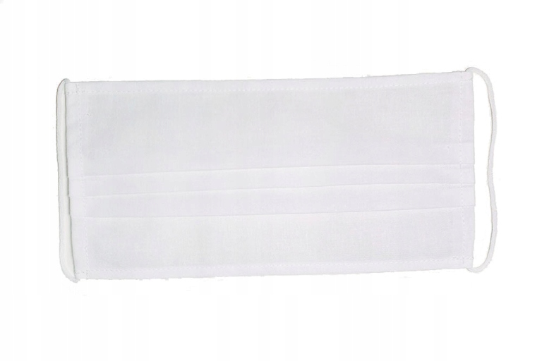 Маска медична захисна, біла, багаторазова, 100% бавовна, на еластичних стрічках, польський товар. Маска, маска бавовняна, багаторазова, закриває обличчя. Товар зроблено в Польщі. Маска виготовлена з 100% бавовняної медичної тканини. Кріпиться гумками. Тканина не містить токсичних речовин. Тканина сертифікована Oeko Tex®. Маска забезпечує легке дихання без подразнення шкіри обличчя.