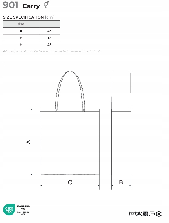 ✔ мішок 43 x 43 x 12 см, ручки 70 х 2,5 см