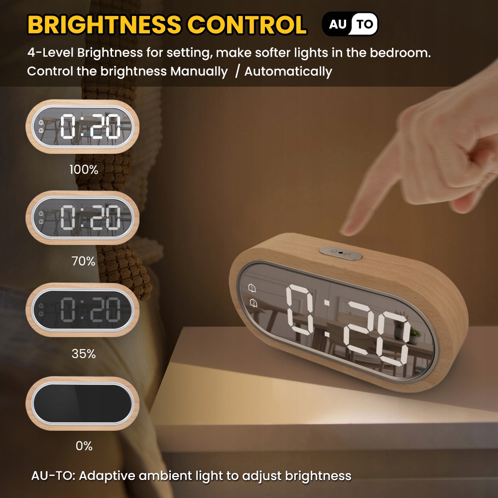 1. Багатофункціональний цифровий будильник: Популярний дзеркальний ефект з ультра чітким світлодіодним дисплеєм. Він має функції годинника, зарядного пристрою (5 В USB -вихід) та термометра, які дуже підходять для спальні, вітальні, офісної кімнати.