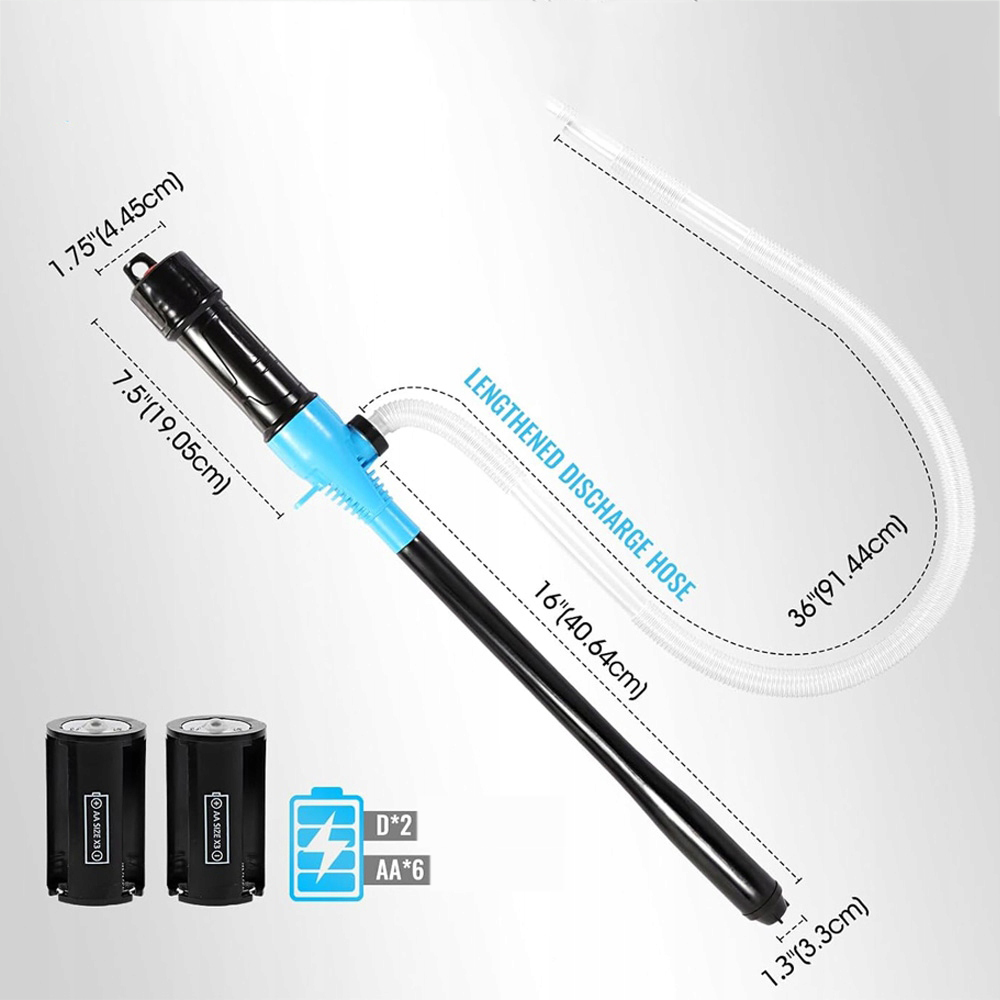 ⛽ розмір: діаметр всмоктувальної труби: 31 мм. Він підходить для більшості паливних резервуарів (пам’ятайте, що діаметр каністра, з якої взята рідина, повинен бути більшим за 33 мм). Довжина шланга 95 см, вписується в газові резервуари з потужністю від 3 до 5 галонів, нафтовими бочками, бочками тощо. Він підходить для більшості надзвичайних ситуацій.