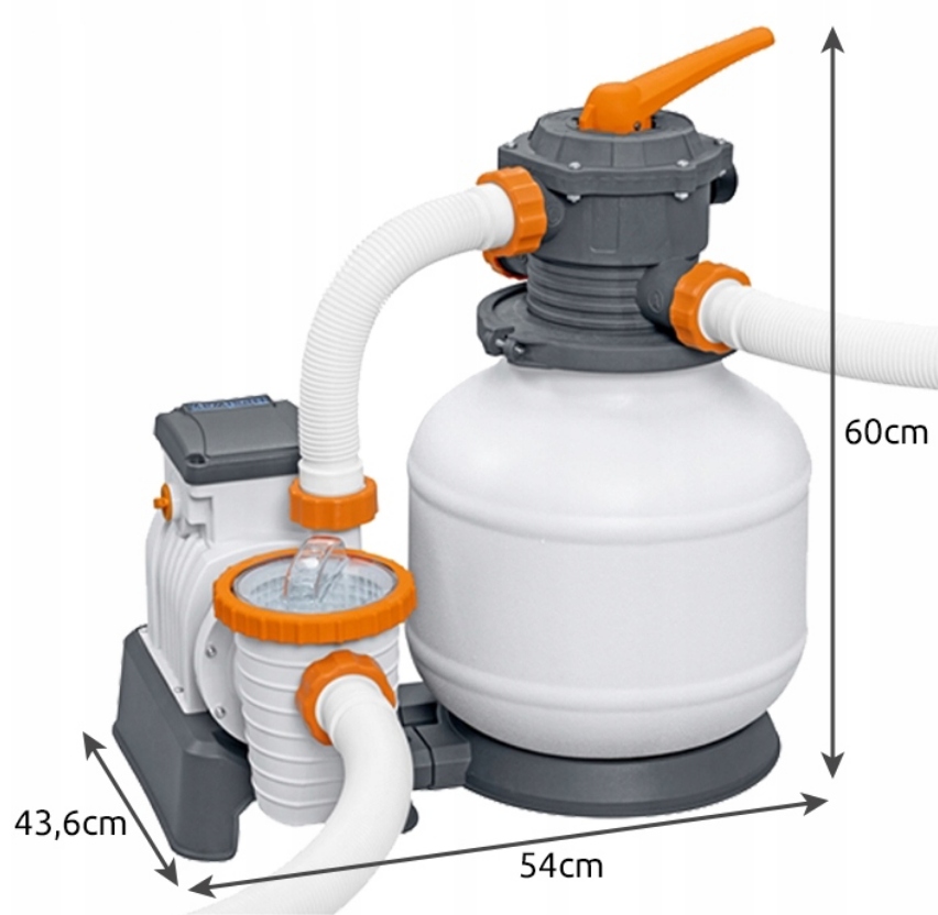 - Пісочний насос Bestway оснащений манометром, який дозволяє перевірити безпеку його роботи, а також видошукачем для сита, що затримує більші відходи. Це дозволяє легко побачити, коли їх потрібно спорожнити.