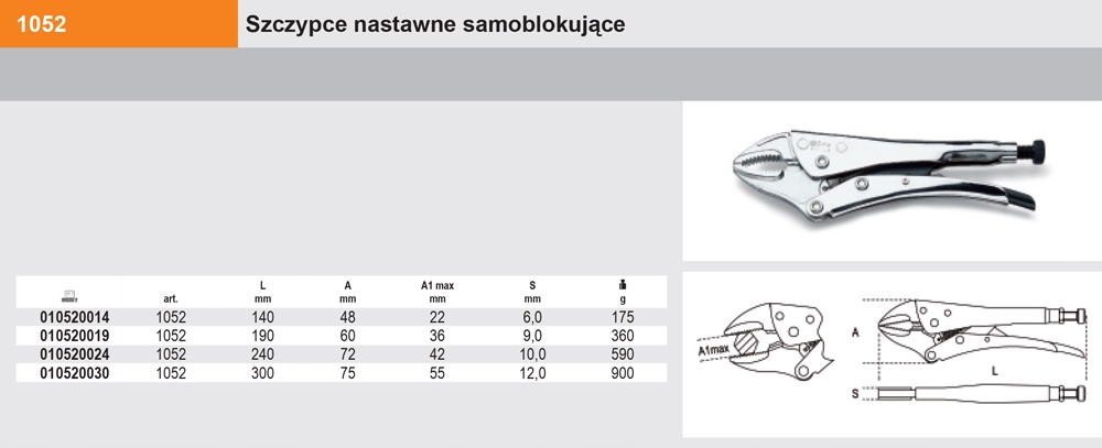 Самоблокувальні регульовані кліщі Beta 1052 140 мм