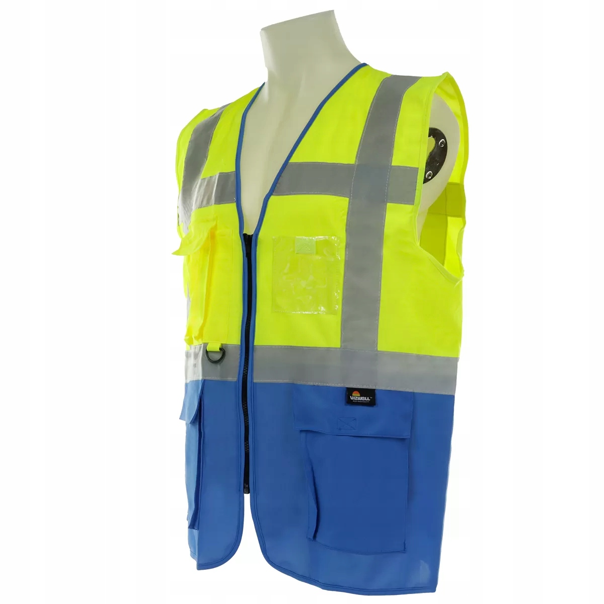 Жовто-блакитний попереджувальний жилет з багатьма кишенями Vizwell beta