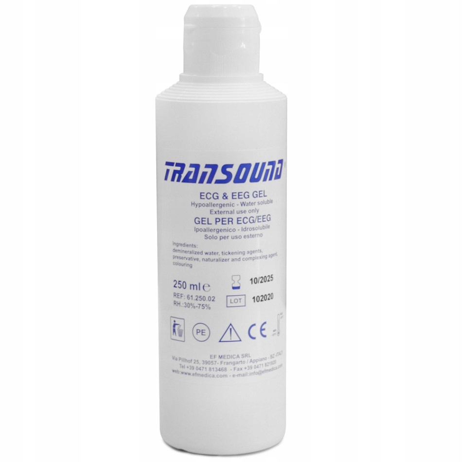 Гель не забруднює, не мастить, не іонізується і не окислюється з часом. Він не містить активних інгредієнтів, які можуть спричинити потенційну шкоду для перетворювача зонда. Використовувані консерванти є нетоксичними та суворо законними. Похід, пляшка 250 мл, упаковка 1 елемента