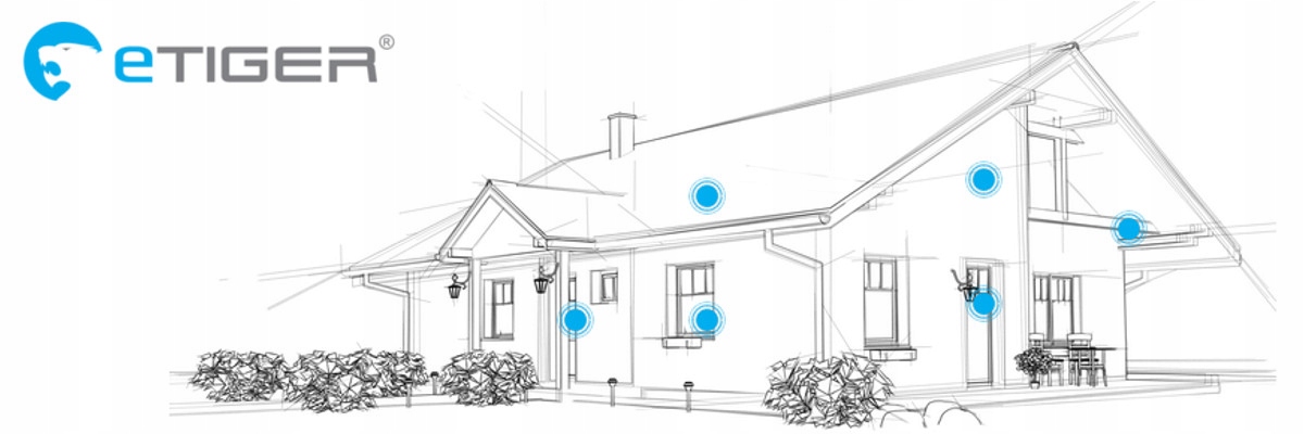 Система Etiger є ідеальним рішенням для людей, яким недостатньо складних замків і протизламних дверей, щоб бути на 100% впевненими, що їх будинок і майно належним чином захищені від відвідин небажаних «гостей». Система Sim Secual оснащена GSM/SMS-передавачем, який миттєво повідомляє безпосередньо на ваш мобільний телефон у разі злому. Система проста в установці та може бути запрограмована до 1 мільйона кодів. Встановлення бездротових детекторів просте та швидке, а завдяки потужній сирені 110 дБ сигналізація відлякує злодіїв.