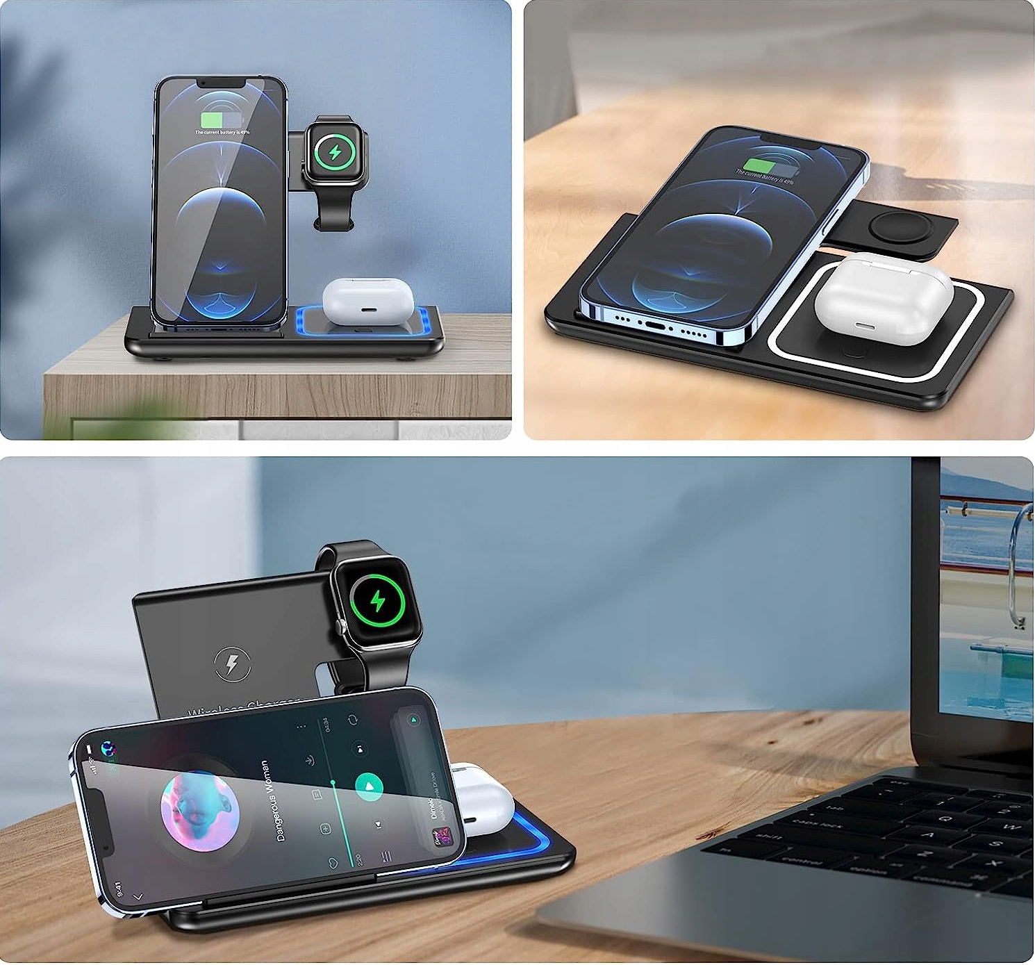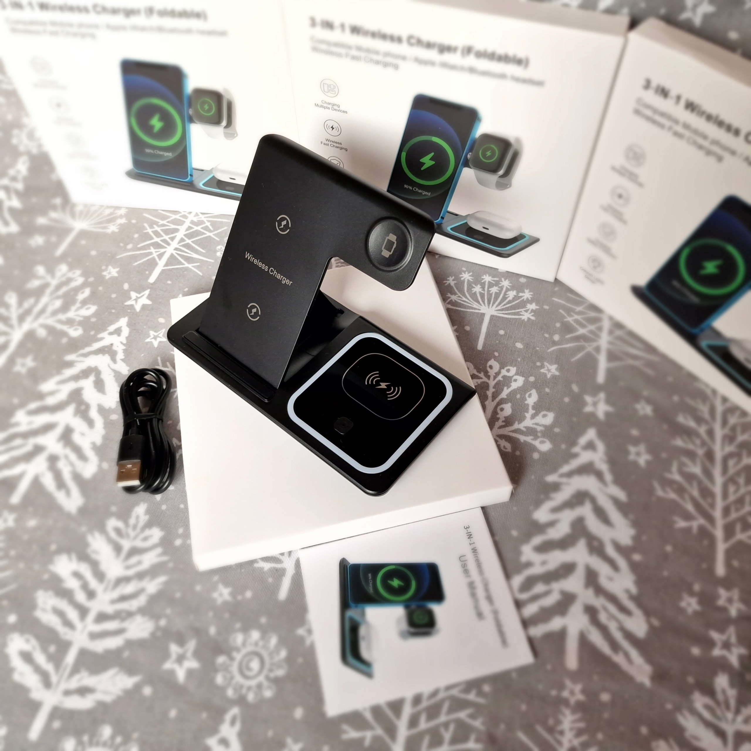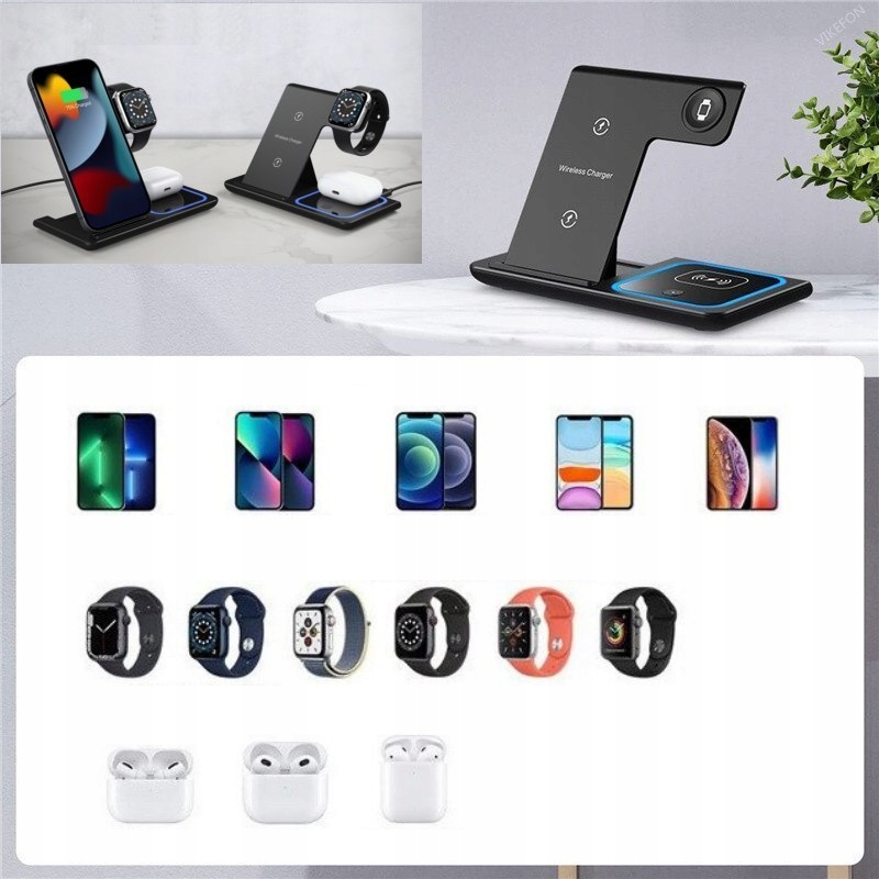 Ви Шукаєте універсальний багатофункціональний бездротовий зарядний пристрій, за допомогою якого можна заряджати смартфон, смарт-годинник і навушники одночасно? У нас є щось спеціально для вас! Надійний виріб з продуманою конструкцією у вигляді підставки значно підвищить комфорт щоденного використання ваших кишенькових гаджетів і допоможе підтримувати порядок на робочому столі.