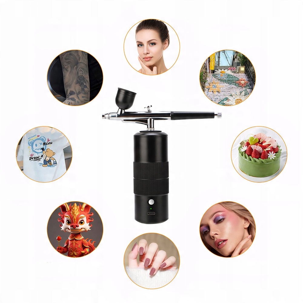Міні -компресорний набір з аерографом є ​​бездротовим, що дозволяє використовувати його в будь -якому місці та часу без обмежень, пов'язаних з кабелями та розетками. Одноразовий набір з компресором та повітряним насосом можна зберігати в рюкзаку або сумці. Цей портативний та витончений компресорний набір ідеально підходить для початківців.