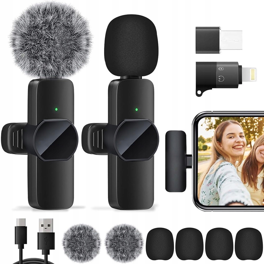 бездротовий набір мікрофона, сумісний з iPhone, Android та PC, оснащеними двома передавачами та приймачами для гнучкого використання. Один інтерфейс призначений для iPhone, а інший інтерфейс може бути підключений до ПК або ноутбука. Зручно та простий у налаштуванні. Це відмінний інструмент для запису конференцій, запису відео, онлайн -курсів, інтерв'ю, передачі в прямому ефірі, відео та всіх інших необхідних випадках.