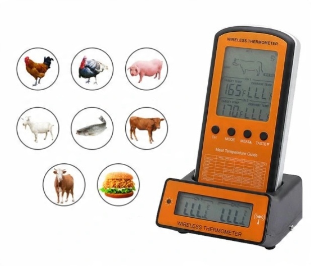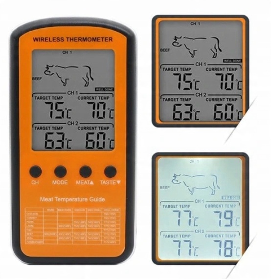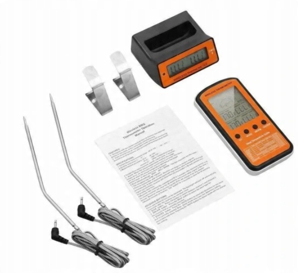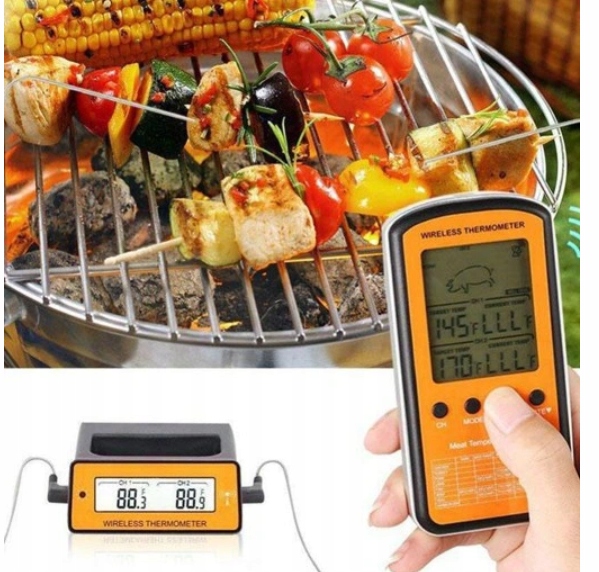 Термометр гриль - це інструмент, який дозволяє контролювати температуру під час грилю. Це дозволяє отримати ідеальну температуру м’яса і уникати ситуації, коли м'ясо недооцінене або спалюється. Цифровий термометр є найсучаснішим типом термометра. Зонд підключений до цифрового пристрою, який відображає внутрішню температуру м’яса на екрані.