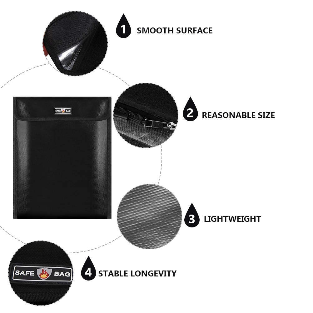 ✅Це вогнестійке скловолокно, яке може витримувати неймовірно високі температури, викликані пожежею. Вогнетривка сумка для документів ідеального розміру, достатньо велика, щоб вмістити більшість документів, папок, готівку компанії, сімейний альбом, перепустки, юридичні документи тощо.