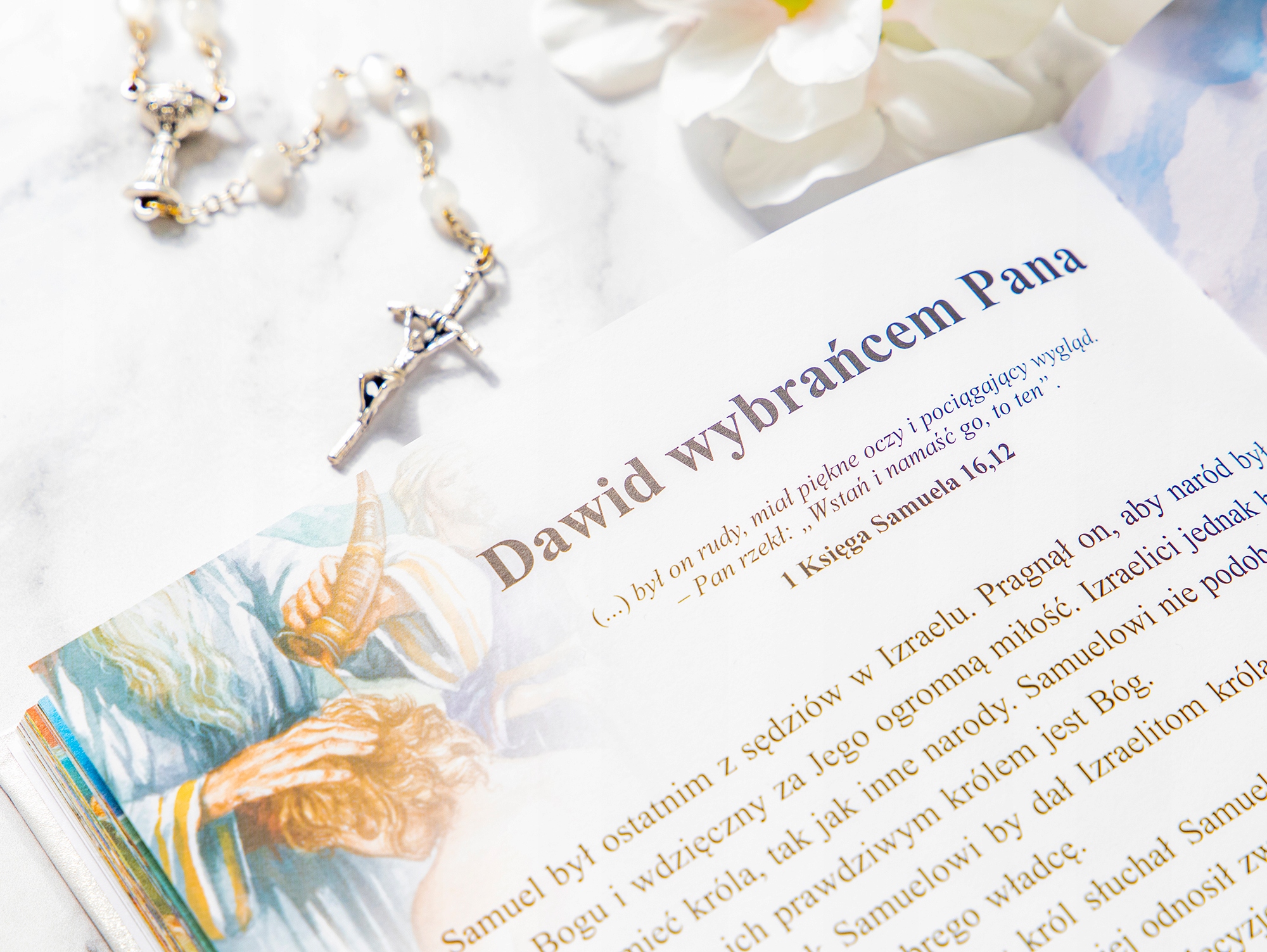 Обкладинка Біблії містить цитату, і її можна персоналізувати за допомогою дати першого причастя, вибраного імені дитини та фотографії. Новітня техніка цифрового УФ-друку дозволяє зберігати надзвичайно яскраві, виразні кольори, які не вицвітають. Найвища якість виконання. Найкращий подарунок / сувенір до Святого Причастя.