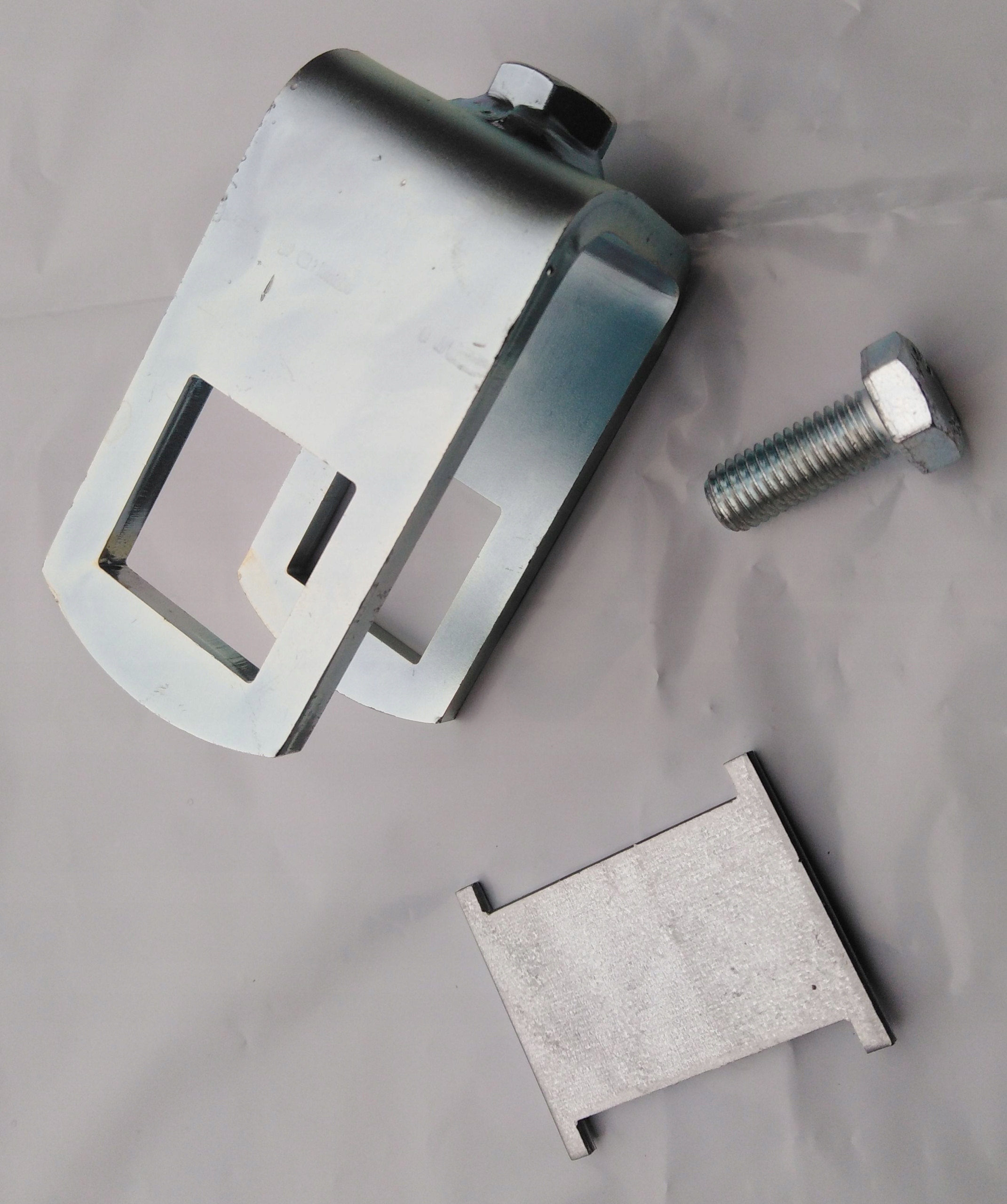 Затискач, який видно на фото нижче (прикручений до рами причепа разом із бічним роликом)