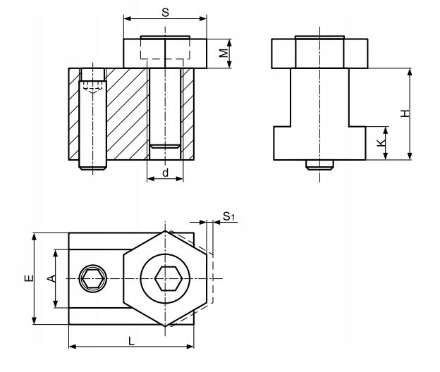 Бічний затискач для Т-подібних пазів 20 мм M16