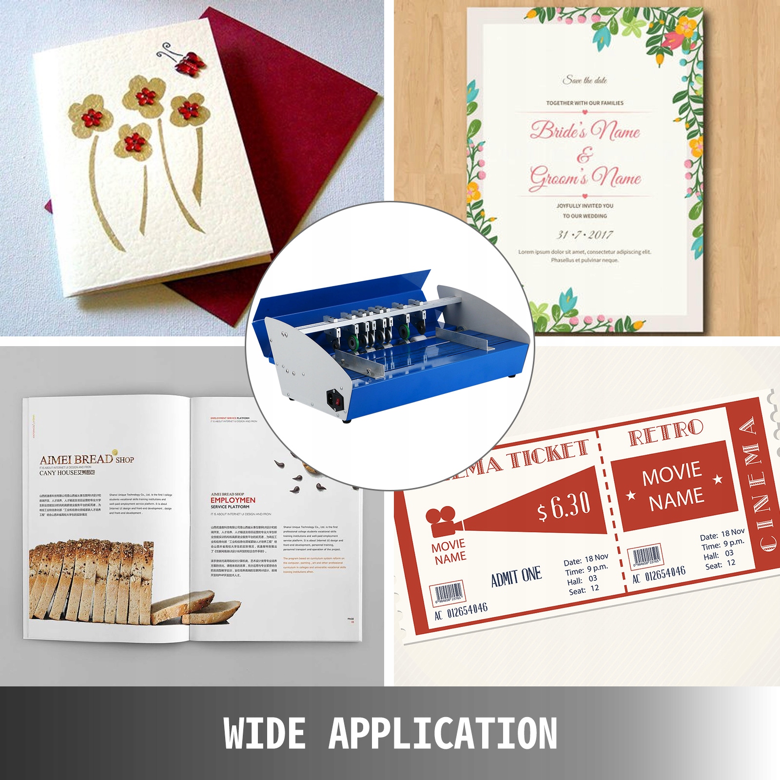 - Ідеально підходить для згинання листівок, запрошень, обкладинок книг, квитків і багатьох інших виробів